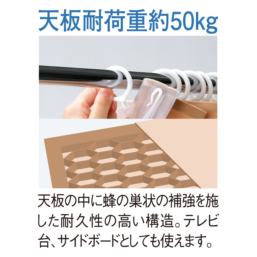 天板は、ハチの巣状の補強を施しており頑丈なつくり。天板耐荷重50キロを実現しました。