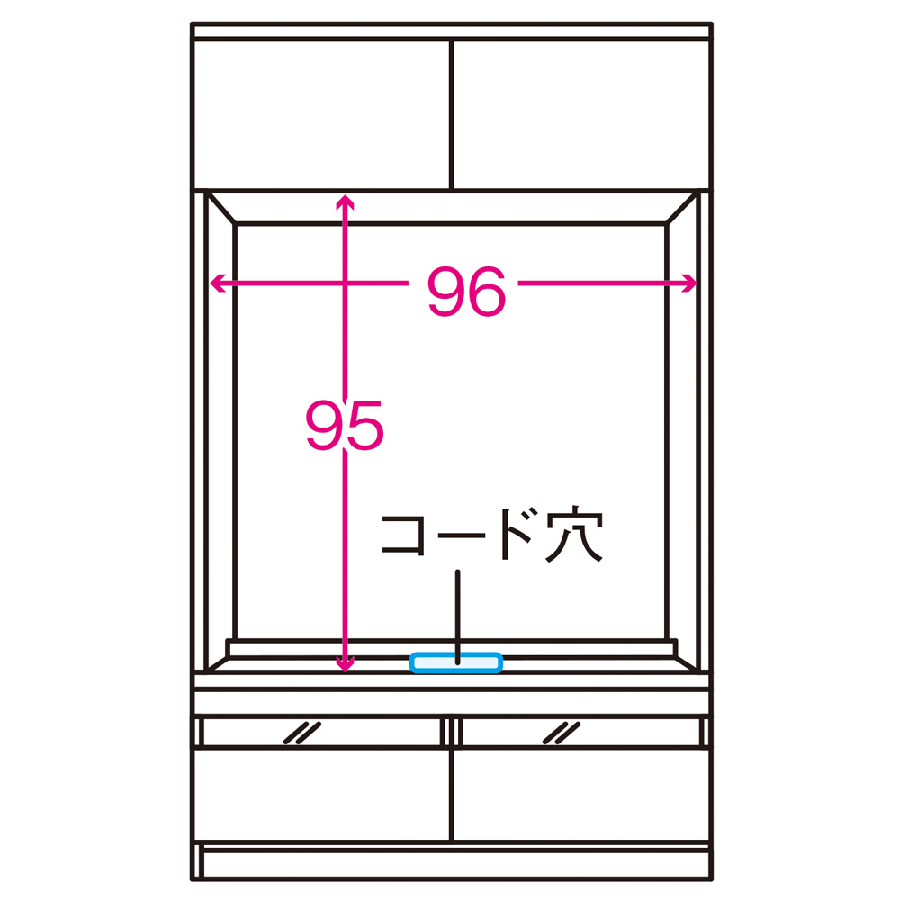 テレビを置くスペースには配線用のコード穴があります。(※お届けの色とは異なります)