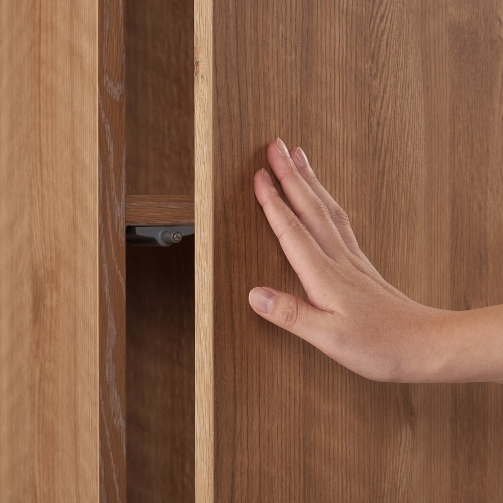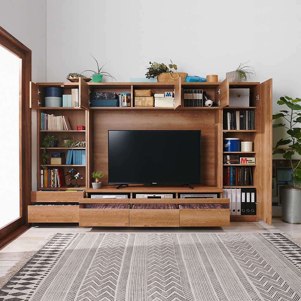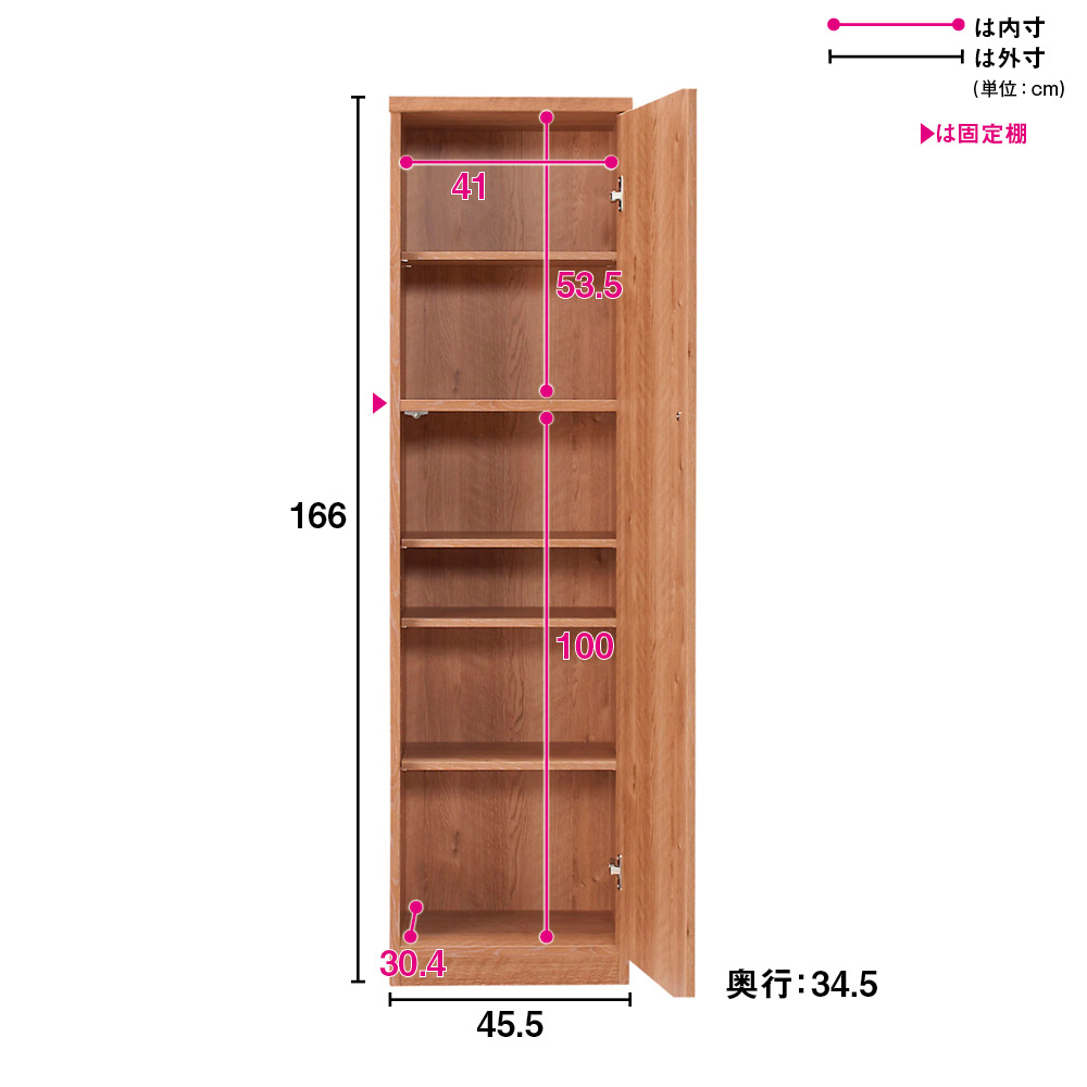 ※本商品は「扉キャビネット・幅45.5奥行34.5cm」単品です。恐れ入りますが、画像説明もあわせてご確認くださいませ。「天然木調テレビ台ハイバックシリーズ」は下記商品名をコピーし検索をお願い申し上げます。天然木調テレビ台ハイバックシリーズ テレビ台・幅100.5奥行45cm天然木調テレビ台ハイバックシリーズ テレビ台・幅120.5奥行45cm天然木調テレビ台ハイバックシリーズ テレビ台・幅159.5奥行45cm天然木調テレビ台ハイバックシリーズ 扉キャビネット・幅45.5奥行34.5cm天然木調テレビ台ハイバックシリーズ 扉キャビネット・幅60.5奥行34.5cm天然木調テレビ台ハイバックシリーズ オープンキャビネット・幅45.5奥行34.5cm天然木調テレビ台ハイバックシリーズ オープンキャビネット・幅60.5奥行34.5cm温かみのある天然木調の木目が特徴のテレビ台ハイバックシリーズ。収納量高めでも女性でも使いやすい高さ166cm。お部屋を北欧のテイストに包み込みます。扉タイプ 幅45.5cm (お届け商品)収納機能が充実した、扉タイプのキャビネットキャビネットは扉タイプ・引き出し&オープンのタイプの2種類があります。サイズは幅45.5cmと60.5cmの2サイズから選べます。(奥行34.5cm)圧迫感を感じさせない女性でも使いやすい高さ166cm。コーディネート例(左からオープンキャビネット幅60.5・テレビ台幅159.5・扉キャビネット幅45.5cm)北欧風のあたたかみあふれるデザイン温かみのある天然木調の木目が特徴で、お部屋を北欧のテイストに包み込みます。シリーズ品のテレビ台と組み合わせたコーディネートも可能。テレビ台は幅100.5cm、120.5cm、159.5cmの3サイズがあります。棚板は高さ調節可能可動棚板が4枚付属しており、3cmごとに高さを調節することができます。収納したい物に合わせて自由に棚の高さを変えることが可能です。使用例(扉タイプ 幅60.5cm)※お届けの色とは異なります高さ100cmの大型収納スペース固定棚の下には高さ100cmの広々とした収納スペースがあります。スティック型の掃除機など背の高いアイテムもすっきりと収納することができます(可動棚も設置できます)。ラクラク開閉!選べる右開き・左開きプッシュ扉なので開閉もラクラク。扉の開きは右開き・左開きのいずれかを選べます。