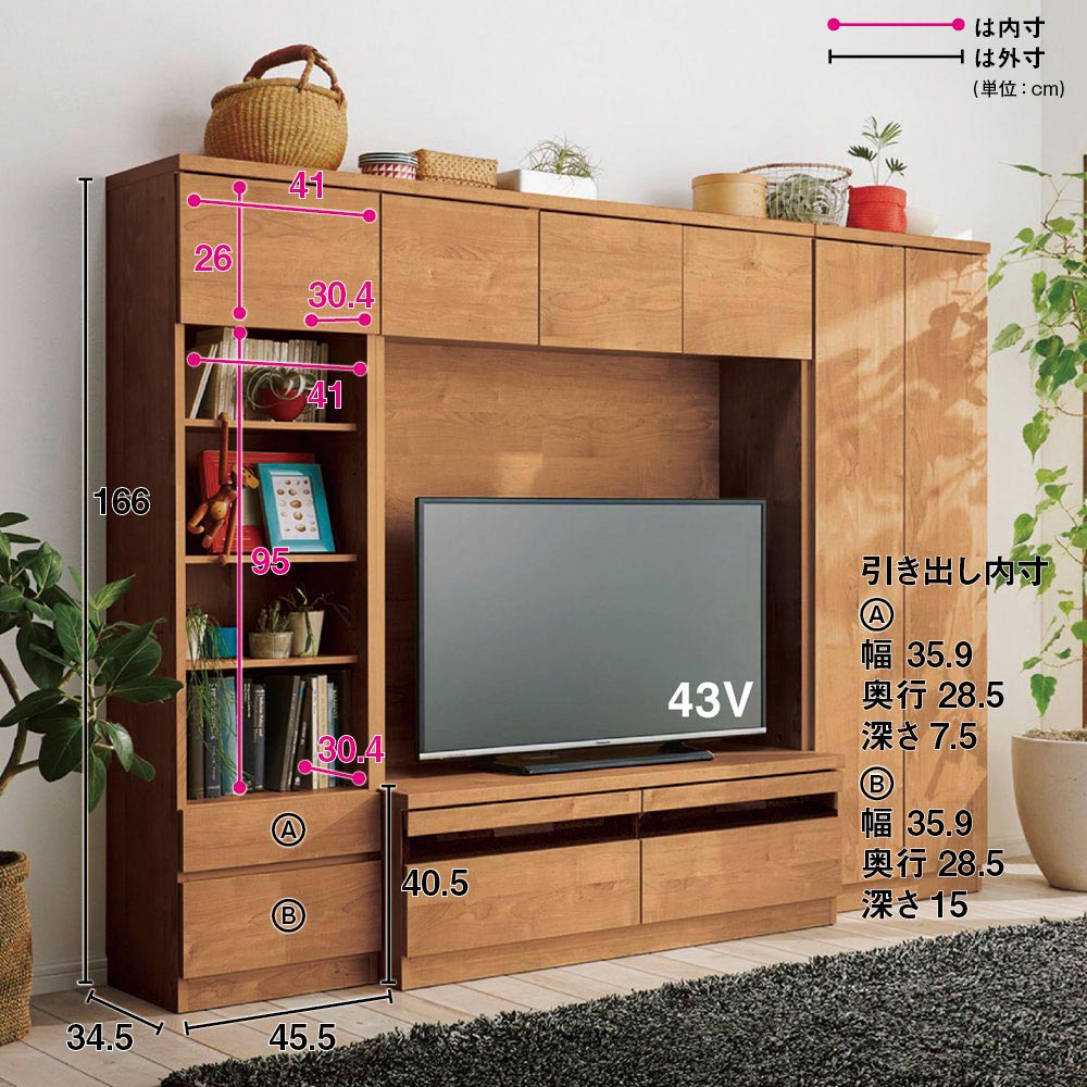 ※本商品は「オープンキャビネット・幅45.5奥行34.5cm」単品です。恐れ入りますが、画像説明もあわせてご確認くださいませ。「天然木調テレビ台ハイバックシリーズ」は下記商品名をコピーし検索をお願い申し上げます。天然木調テレビ台ハイバックシリーズ テレビ台・幅100.5奥行45cm天然木調テレビ台ハイバックシリーズ テレビ台・幅120.5奥行45cm天然木調テレビ台ハイバックシリーズ テレビ台・幅159.5奥行45cm天然木調テレビ台ハイバックシリーズ 扉キャビネット・幅45.5奥行34.5cm天然木調テレビ台ハイバックシリーズ 扉キャビネット・幅60.5奥行34.5cm天然木調テレビ台ハイバックシリーズ オープンキャビネット・幅45.5奥行34.5cm天然木調テレビ台ハイバックシリーズ オープンキャビネット・幅60.5奥行34.5cm温かみのある天然木調の木目が特徴のテレビ台ハイバックシリーズ。収納量高めでも女性でも使いやすい高さ166cm。お部屋を北欧のテイストに包み込みます。お届けは左の「オープンキャビネット幅45.5cm」です収納機能が充実した、引き出し&オープンのタイプのキャビネットディスプレイが楽しめるオープン棚と隠せる扉収納、小物の収納に便利な引き出しを合わせたキャビネットです。キャビネットは扉タイプ・引き出し&オープンのタイプの2種類があります。サイズは幅45.5cmと60.5cmの2サイズから選べます。(奥行34.5cm)圧迫感を感じさせない女性でも使いやすい高さ166cm。コーディネート例(左からオープンキャビネット幅45.5・テレビ台幅120.5・扉キャビネット幅60.5cm) 北欧風のあたたかみあふれるデザイン温かみのある天然木調の木目が特徴で、お部屋を北欧のテイストに包み込みます。シリーズ品のテレビ台と組み合わせたコーディネートも可能。テレビ台は幅100.5cm、120.5cm、159.5cmの3サイズがあります。※お届けの色とは異なりますディスプレイが楽しめる、高さ調節可能なオープン棚。オープン棚なのでディスプレイが楽しめます。また可動棚板が3枚付属しており、3cmごとに高さを調節することができます。収納したい物に合わせて自由に棚の高さを変えることが可能です。※お届けの色とは異なります隠せる扉収納。選べる右開き・左開き扉は下に手を掛けて開ける仕様になっています。扉の開きは、右開き・左開きのいずれかを注文時にご指定ください。※お届けの色とは異なりますスッキリしたデザインとスライドレールを備えた引き出し引き出しは取っ手のないスッキリしたデザイン。奥のモノも取りやすいフルスライドレールを使用しており、開閉がスムーズです。