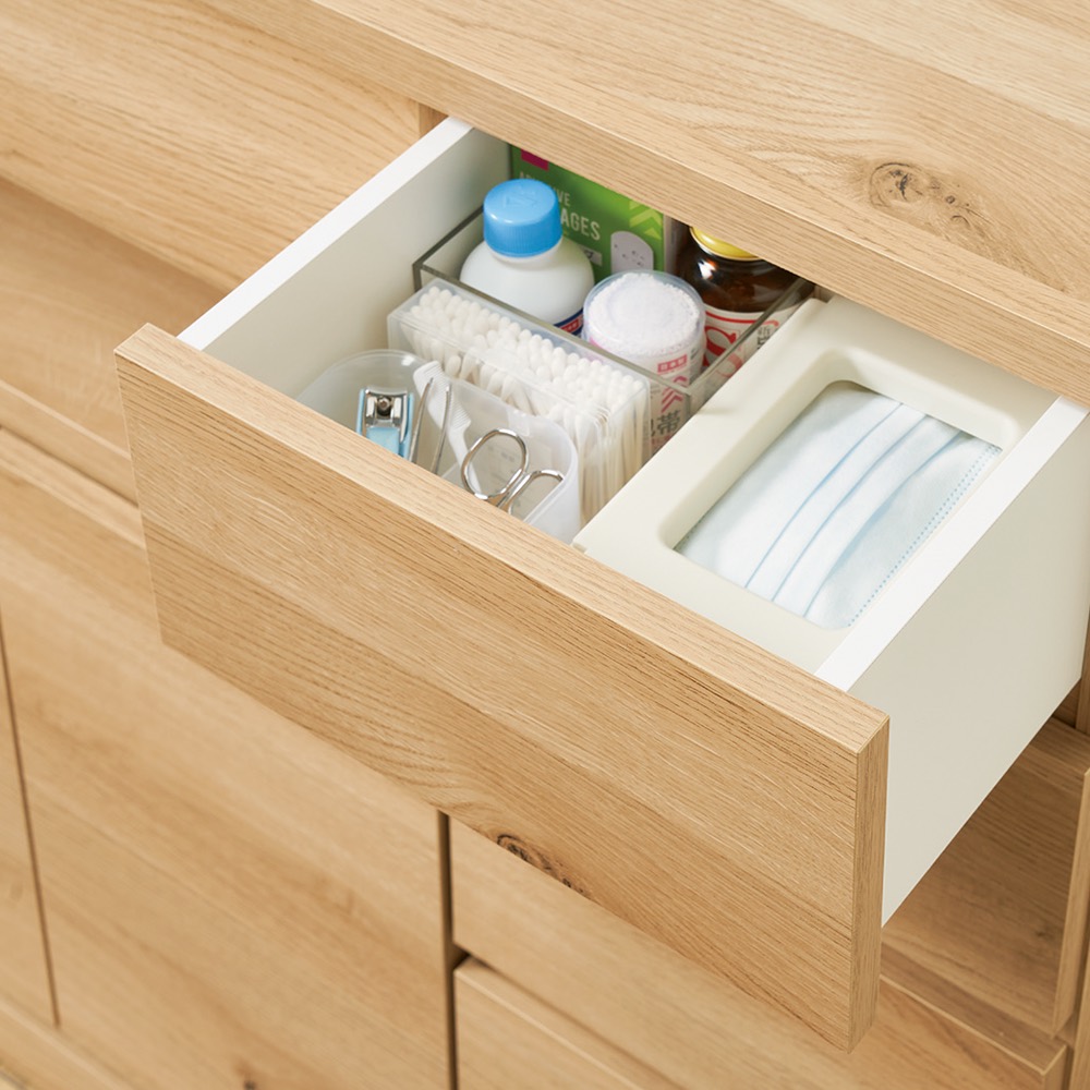 【浅引き出し】マスクやよく使う薬類、爪切りなどサッと出したい物を。