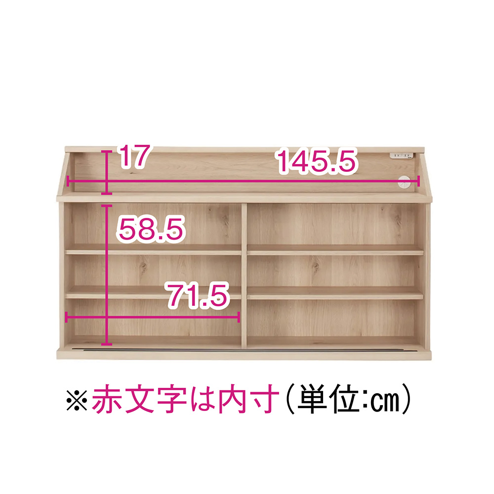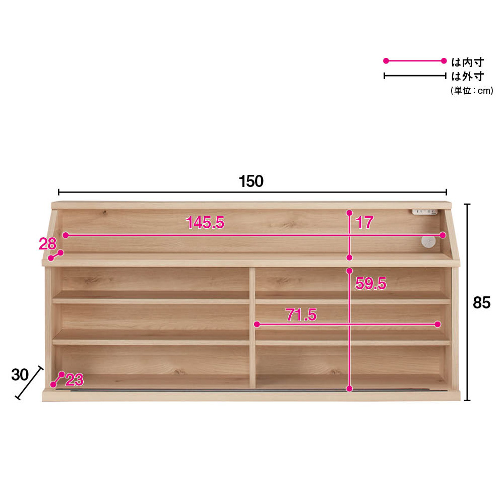 オープン部奥には2口コンセントとコード穴付き。オープン部有効高さ17cm。