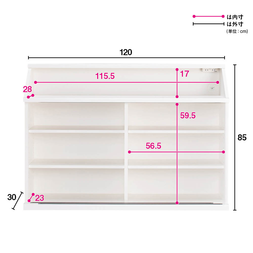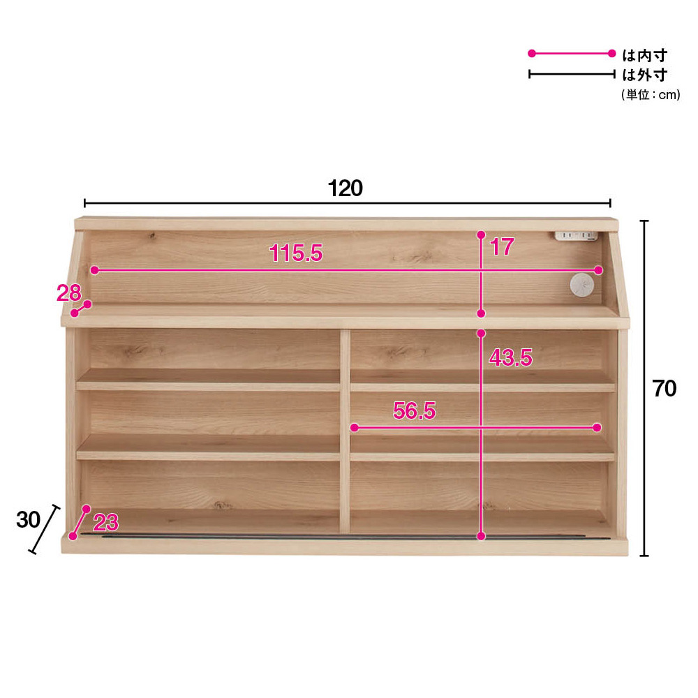 幅120高さ70cm 内部構造 ※高さ70cmは棚板4枚、高さ85cmは棚板6枚付きです。