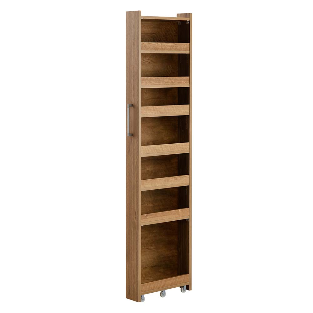 総耐荷重約70kgの頑丈すき間収納。今まで見過ごしていた空間を活用して大量のペットボトルや調味料をストック。片面に背板付のオープンタイプで出し入れスムーズ。組立不要な完成品。〜オープンタイプで取り出しやすい隙間収納キッチンラック〜◆キッチンのすき間、わずか幅10cmから隙間収納庫としてぴったりフィット。◆オープンタイプで必要な時にサッと取り出せます。◆キャスター付きで使う時だけ手前に引き出して両サイドから取り出せるアイデア隙間収納です。◆片側に背板が付いているので収納物も安心してしまえます。◆オープン部を左右どちらにするかは設定自由です。(取っ手を付ける位置を替えるだけで簡単に変更できます)◆隙間にしまえば台所スッキリ。すき間を利用して収納上手にさせるキッチン収納です。◆1cmピッチの可動収納棚板は収納物の高さに応じて設定できます。◆耐久性のある頑丈な構造(当社比)になっていますので安心してお使いください。◆幅10cmから選べるので台所の隙間にぴったりなサイズをお選びください。◆色はシンプルなホワイトとモダンなダークブラウン、天然木調の木目が美しいブラウンからお選びいただけます。〜妥協しないモノ作り、様々な機能を備えたキッチン収納庫〜◆キッチンに配慮して汚れが簡単に拭き取れる、お手入れしやすい素材「クリーンイーゴス」を使用しています。(ホワイトのみ)◆スパイスなどがこぼれ落ちないように収納棚に立ち上がりを設置しました。◆1cmピッチで細かく可動収納棚板を設定できるのが魅力です。〜たくさん収納して欲しいので耐荷重にこだわりました〜◆総耐荷重なんと70kg!!棚板1枚当たり10kgの荷重で試験を行いました。◆固定棚にはL字金具を補強して強度を高めてあります。〜信頼と安心の国内工場での生産品です〜◆国内の職人がひとつずつ丁寧に仕上げた逸品です。◆細部の丁寧な仕上がりなど、国産品ならではの高品質をお楽しみください。◆完成品でお届けするので届いたその日からお使いになれます。