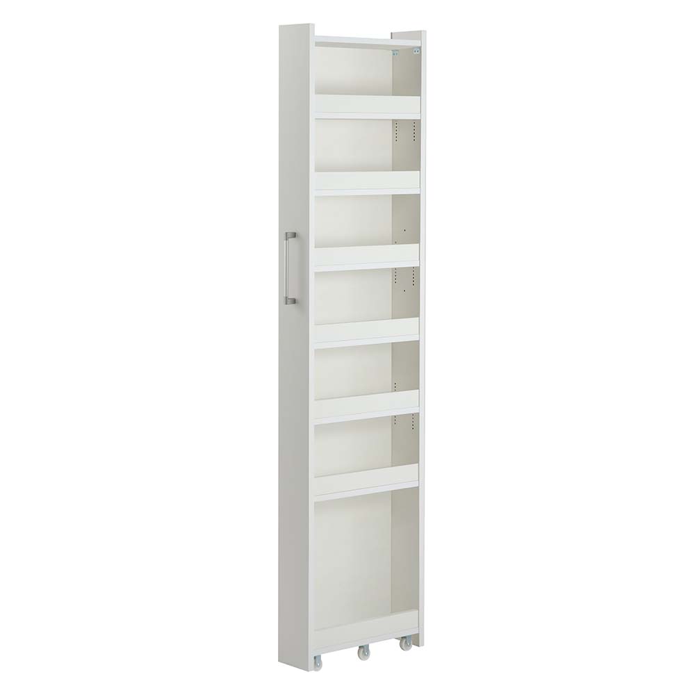 総耐荷重約70kgの頑丈すき間収納。今まで見過ごしていた空間を活用して大量のペットボトルや調味料をストック。片面に背板付のオープンタイプで出し入れスムーズ。組立不要な完成品。