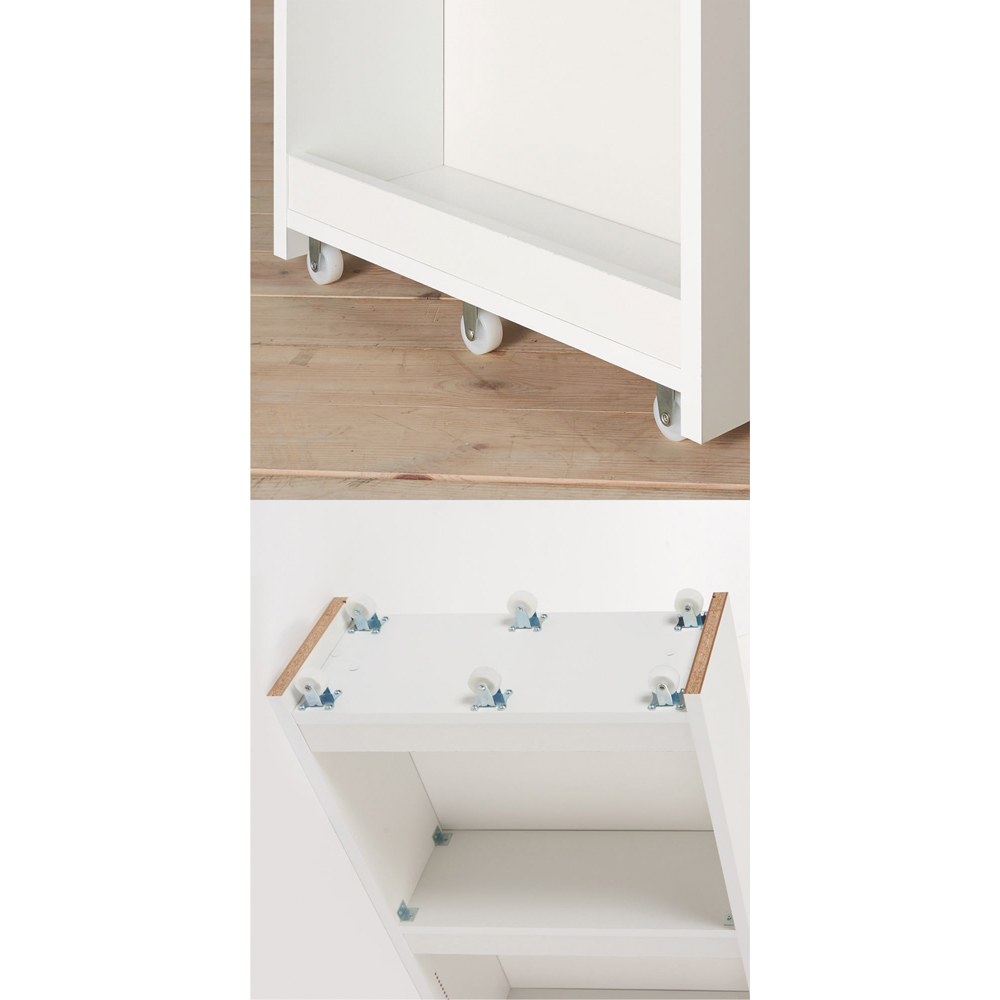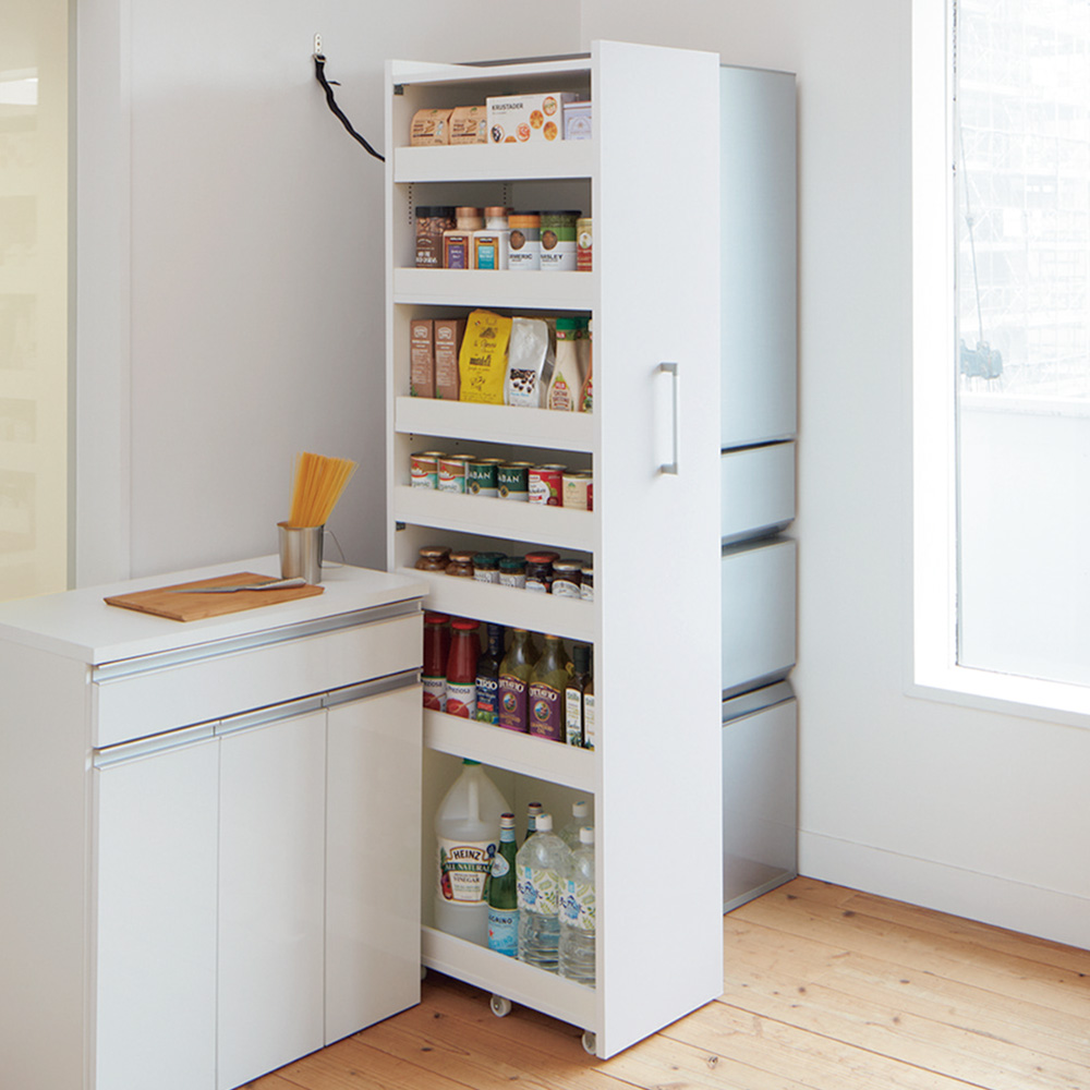 使用イメージ(ア)ホワイト 幅が1cm刻みで選べるから、キッチンのあらゆるすき間にぴったり収まります。 ※写真は別売りの幅21cm奥行55cmタイプになります。