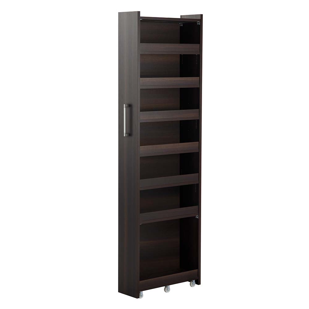 総耐荷重約70kgの頑丈すき間収納。今まで見過ごしていた空間を活用して大量のペットボトルや調味料をストック。片面に背板付のオープンタイプで出し入れスムーズ。組立不要な完成品。〜オープンタイプで取り出しやすい隙間収納キッチンラック〜◆キッチンのすき間、わずか幅10cmから隙間収納庫としてぴったりフィット。◆オープンタイプで必要な時にサッと取り出せます。◆キャスター付きで使う時だけ手前に引き出して両サイドから取り出せるアイデア隙間収納です。◆片側に背板が付いているので収納物も安心してしまえます。◆オープン部を左右どちらにするかは設定自由です。(取っ手を付ける位置を替えるだけで簡単に変更できます)◆隙間にしまえば台所スッキリ。すき間を利用して収納上手にさせるキッチン収納です。◆1cmピッチの可動収納棚板は収納物の高さに応じて設定できます。◆耐久性のある頑丈な構造(当社比)になっていますので安心してお使いください。◆幅10cmから選べるので台所の隙間にぴったりなサイズをお選びください。◆色はシンプルなホワイトとモダンなダークブラウン、天然木調の木目が美しいブラウンからお選びいただけます。〜妥協しないモノ作り、様々な機能を備えたキッチン収納庫〜◆キッチンに配慮して汚れが簡単に拭き取れる、お手入れしやすい素材「クリーンイーゴス」を使用しています。(ホワイトのみ)◆スパイスなどがこぼれ落ちないように収納棚に立ち上がりを設置しました。◆1cmピッチで細かく可動収納棚板を設定できるのが魅力です。〜たくさん収納して欲しいので耐荷重にこだわりました〜◆総耐荷重なんと70kg!!棚板1枚当たり10kgの荷重で試験を行いました。◆固定棚にはL字金具を補強して強度を高めてあります。〜信頼と安心の国内工場での生産品です〜◆国内の職人がひとつずつ丁寧に仕上げた逸品です。◆細部の丁寧な仕上がりなど、国産品ならではの高品質をお楽しみください。◆完成品でお届けするので届いたその日からお使いになれます。