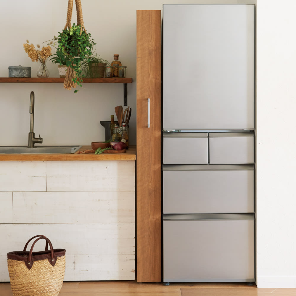 使用イメージ(ウ)ブラウン 冷蔵庫横の中途半端なすき間にもジャストフィット。 ※写真は別売りの幅16cm奥行55cmタイプになります。