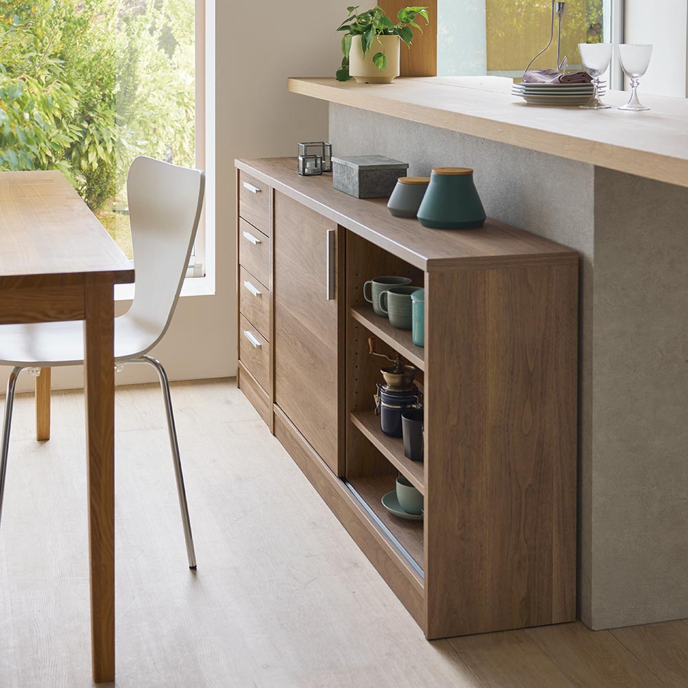 コーディネート例 ※写真は左からチェスト 幅45cm高さ70cm、片引き戸 幅120cm高さ70cmです。