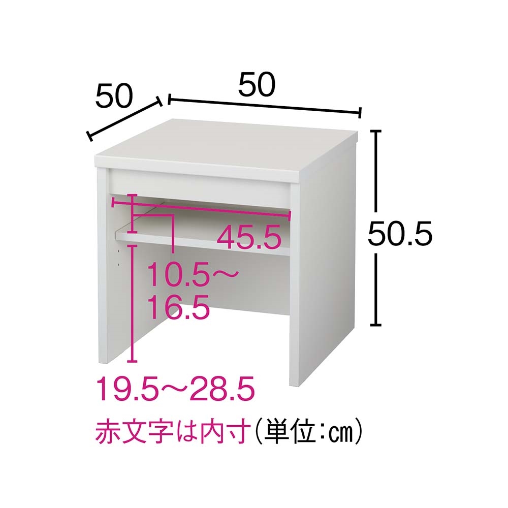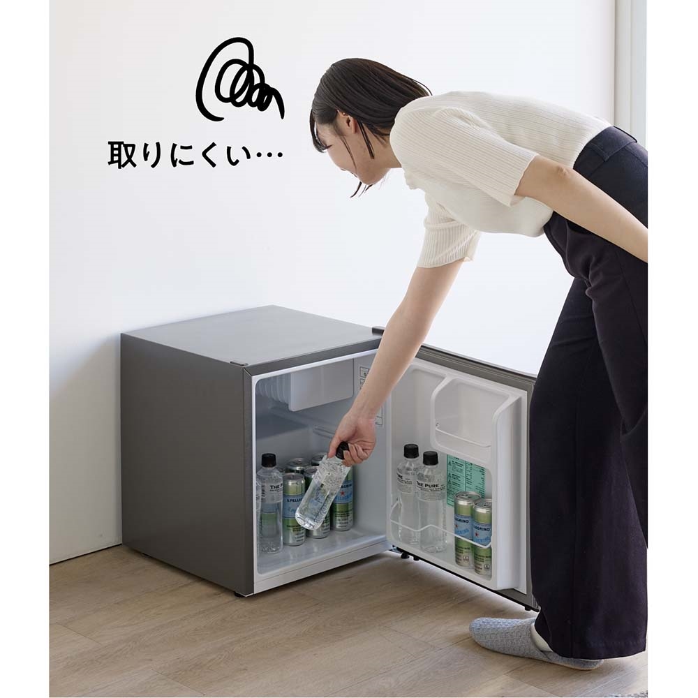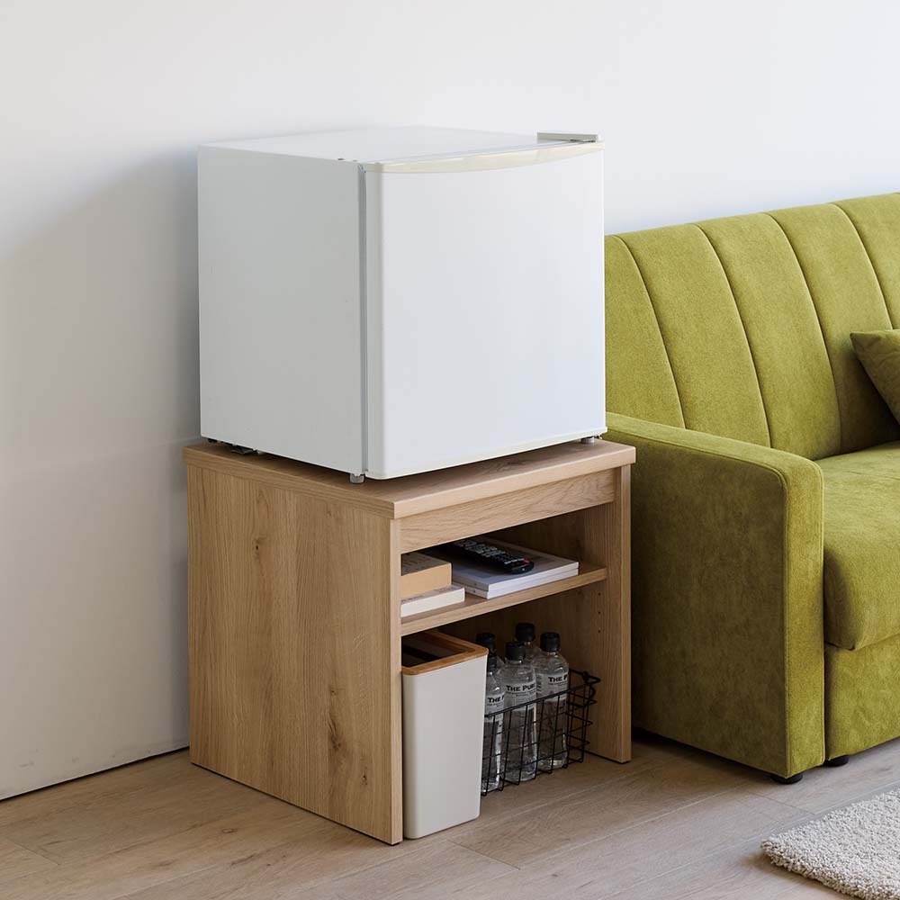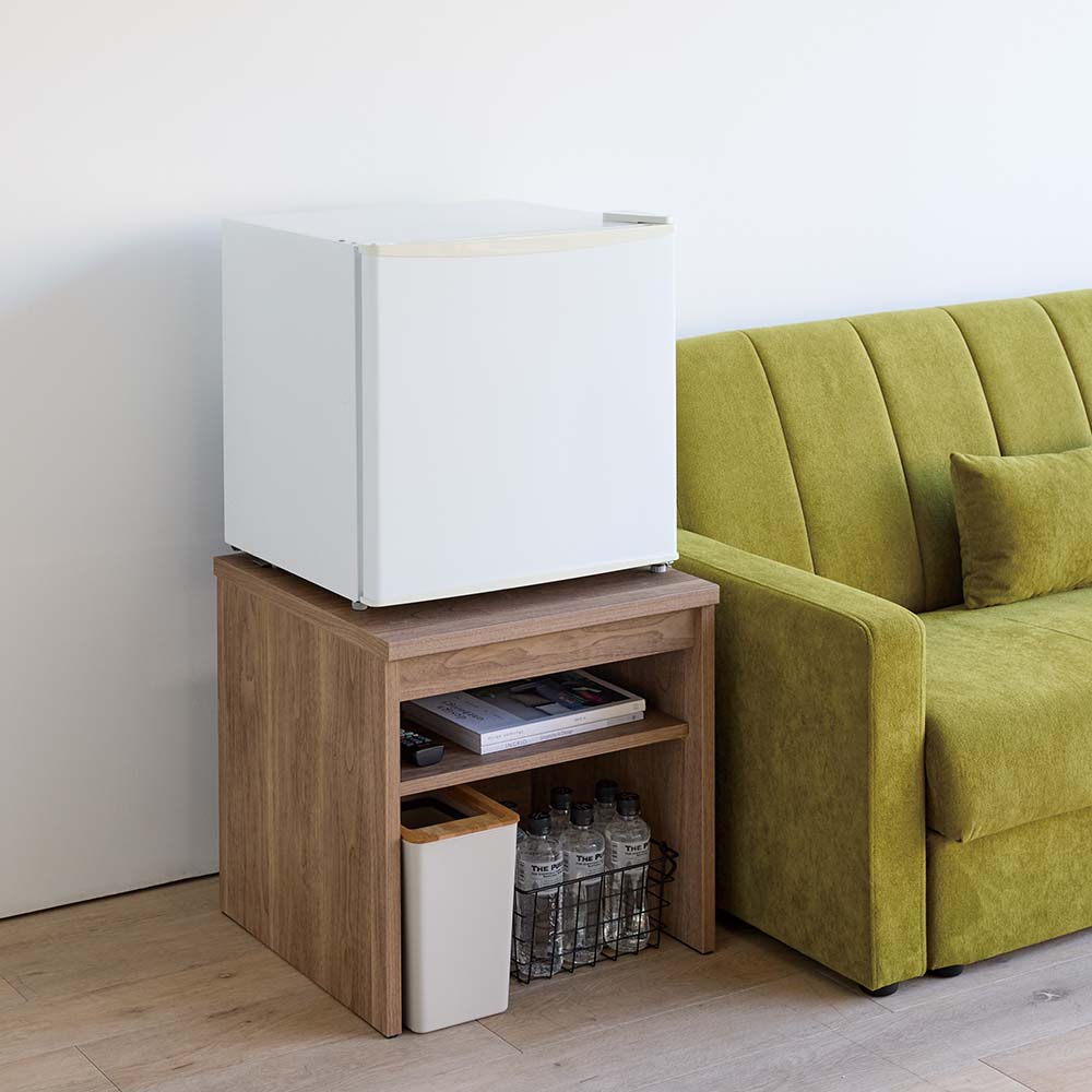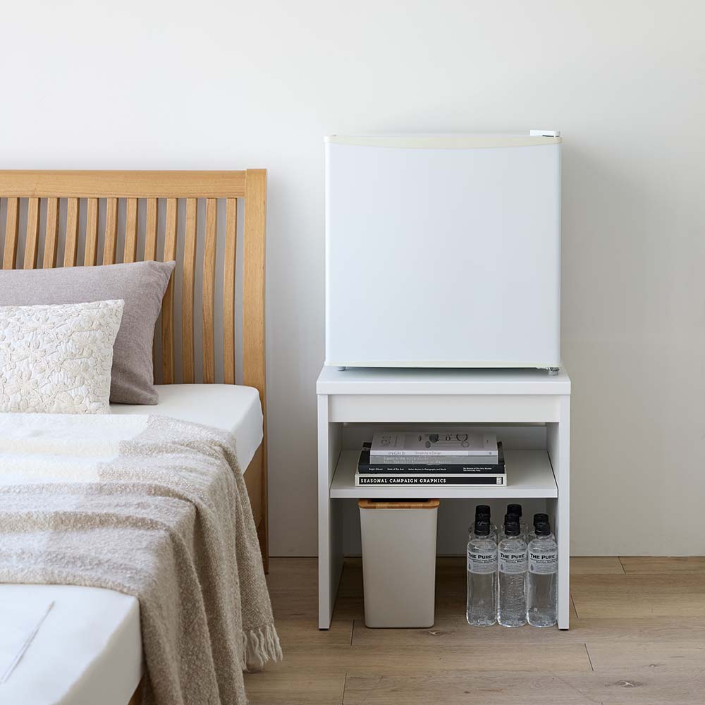 小型冷蔵庫、買ったはいいけど、高さが低くて使いにくい…なんてことはありませんか?頑丈さもしっかり備えた専用のラックなら、適度な高さと収納で冷蔵庫がグッと使いやすくなります。専用ラックで、ミニ冷蔵庫の“もったいない”を解消床置きでは腰を屈めて出し入れ…かといって重くて家具の上に載せるのも不安…。この専用ラックなら、小型冷蔵庫を腰高に設置でき、使い勝手がぐんと向上。可動棚付なので、冷蔵庫に入れるドリンクのストックの収納や、寝室やリビングのサイドテーブルとして小物の収納にも便利です。ミニ冷蔵庫にぴったりの安心設計耐荷重はしっかり約40kgを確保。天板裏面の補強を強化するなど頑丈な設計で、冷蔵庫を乗せても安心してご使用いただけます。冷蔵庫のサイズに合わせてお選びください天板面のサイズはお得な44.5cm×44.5cmのサイズと、50cm×50cmをご用意。冷蔵庫の脚部の位置を確認してお選びください。