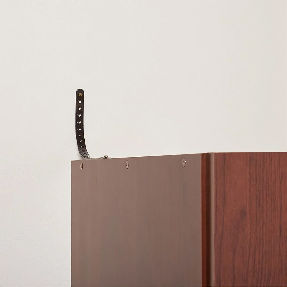 総耐荷重約70kg。頼れる日本製です。第三者公的機関による「耐荷重試験」をクリアした自信の品質です。固定棚の裏はL字金具でしっかり支えて強度を高めています。