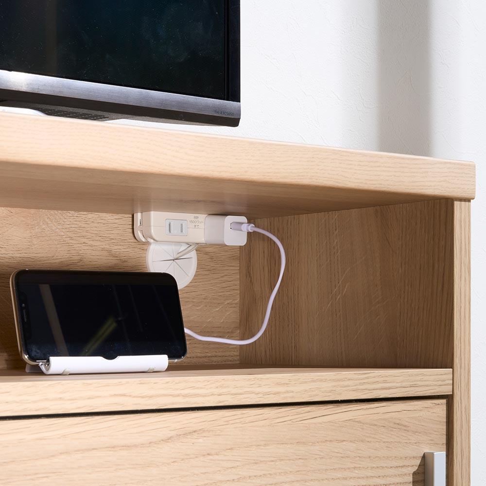 天板が本体より少し奥に出ているので、本体裏にコードが通せます。