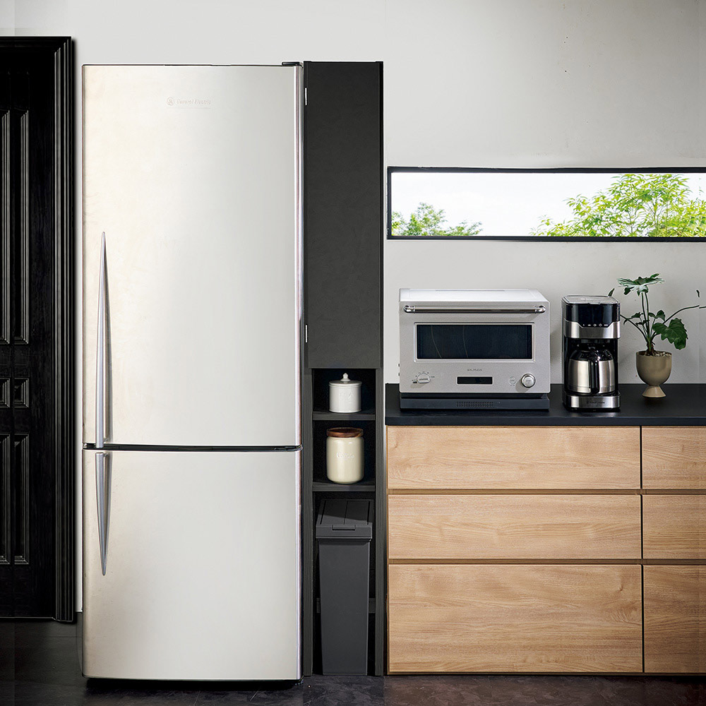 奥行45cm、高さ180cmのサイズ設定。キッチンカウンターや冷蔵庫と並べた時の収まりの良さや収納力、出し入れのしやすさなどに配慮し、汎用性の高いサイズに設定しました。