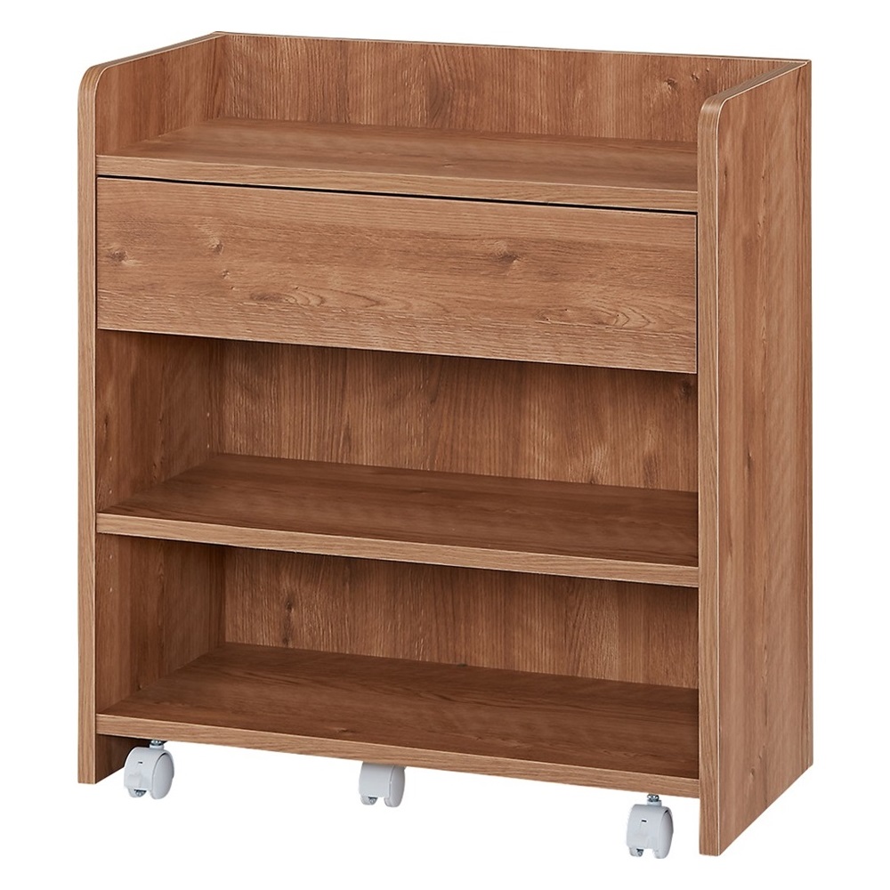コーディネート例(イ)ブラウン 窓下に置きやすい高さ66cm。壁際に収納が作れてリビングや子供部屋が片付きます。 ※写真は左から小引き出しタイプ・幅79高さ66cm、棚タイプ・幅79高さ66cm、マルチタイプ・幅79高さ66cmです。