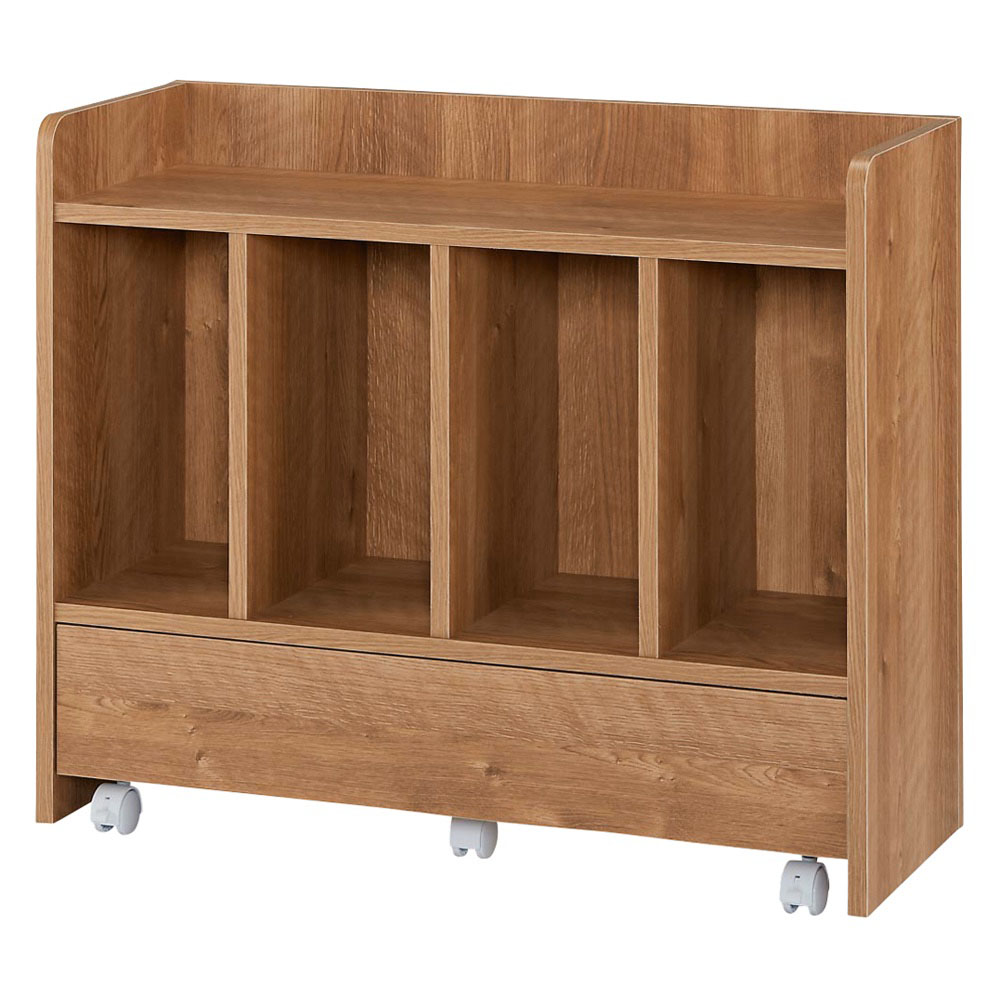 コーディネート例(イ)ブラウン 窓下に置きやすい高さ66cm。壁際に収納が作れてリビングや子供部屋が片付きます。 ※写真は左から小引き出しタイプ・幅79高さ66cm、棚タイプ・幅79高さ66cm、マルチタイプ・幅79高さ66cmです。