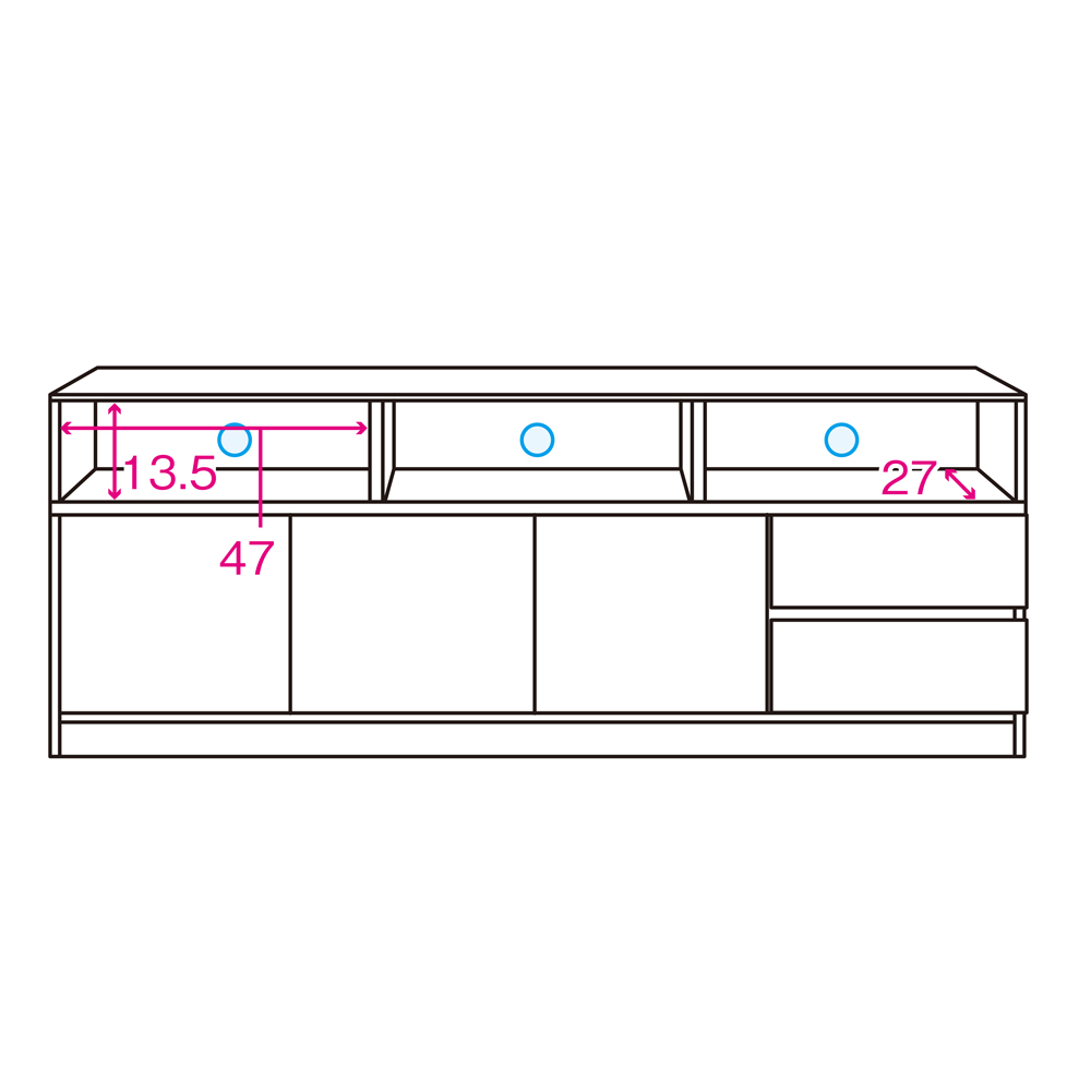 使用イメージ(ア)ホワイト 大迫力のシアター気分を楽しめるテレビ台。ソファでくつろぎながら見ても疲れにくい高さ設定で、薄型だからお部屋も広々と使えます。