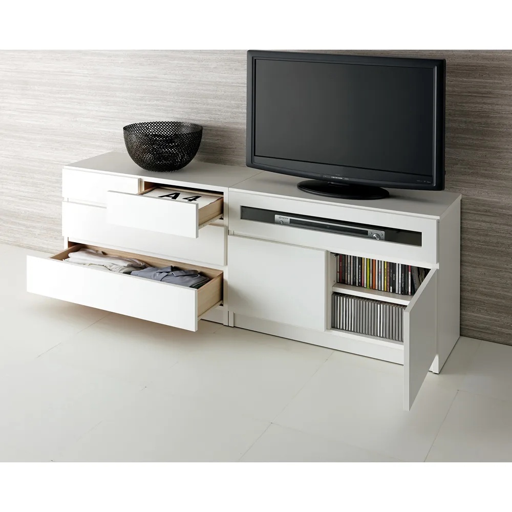 使用イメージ(ア)ホワイト ※写真左から別売りのチェスト幅80cm高さ55cmタイプ、テレビ台・幅80cm高さ55cmタイプです。