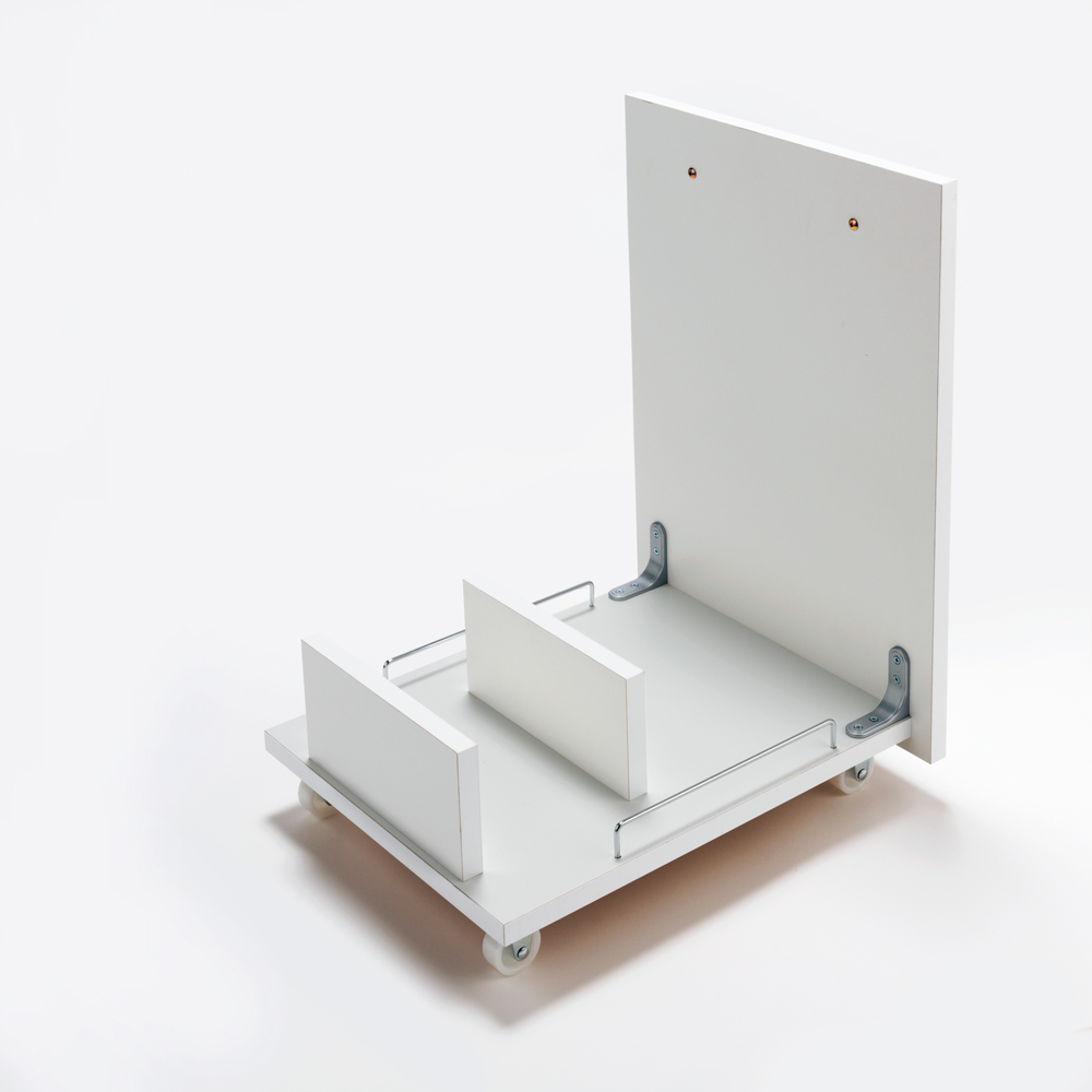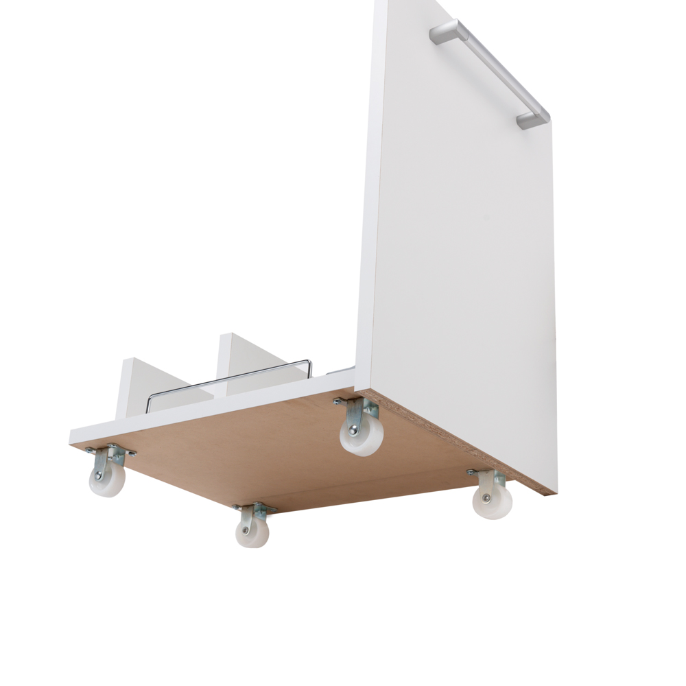 使用イメージ(ア)ホワイト 最下段は上部の扉を閉めたままでも取り出せるキャスター付きワゴン仕様。 ※写真は別売りの4分別タイプです。