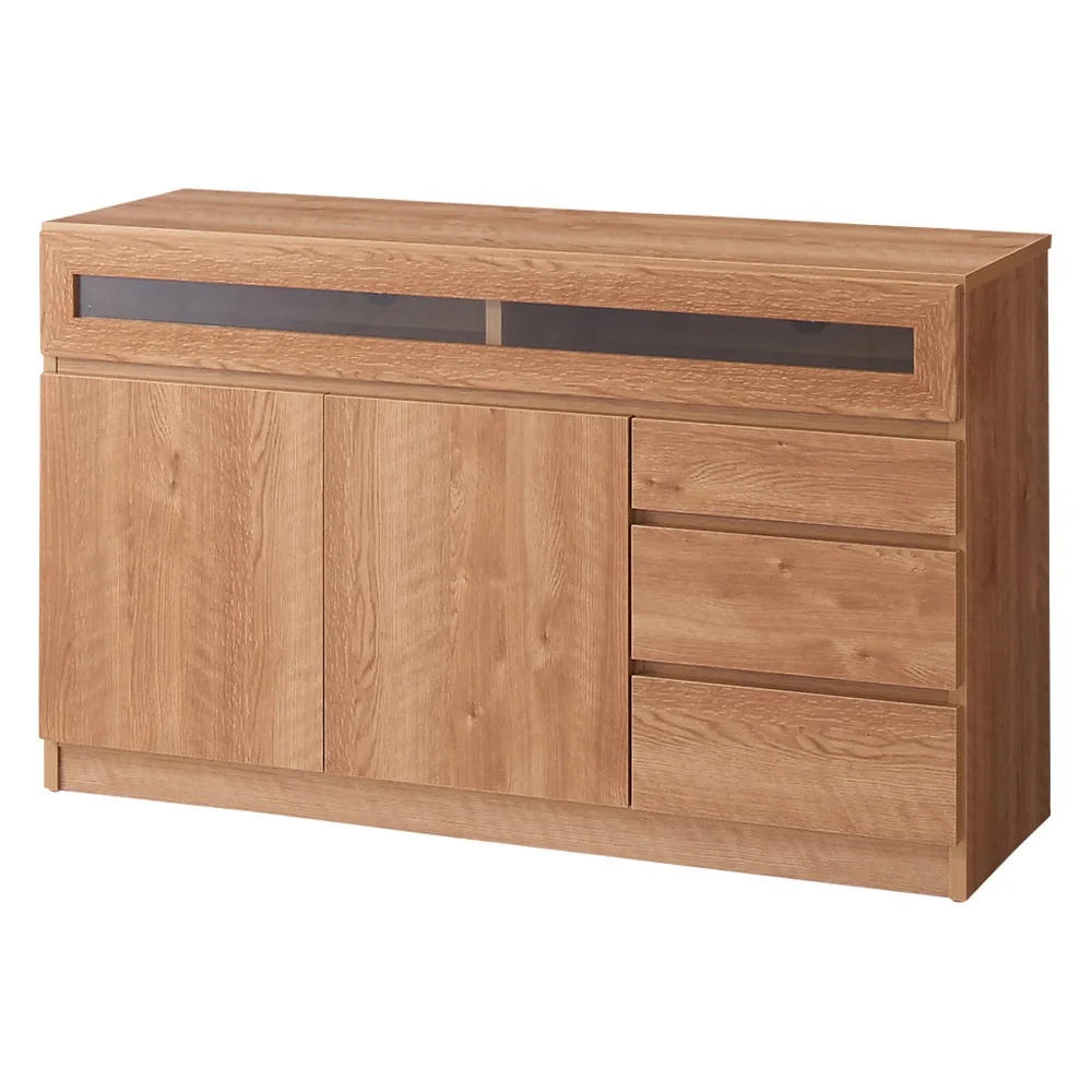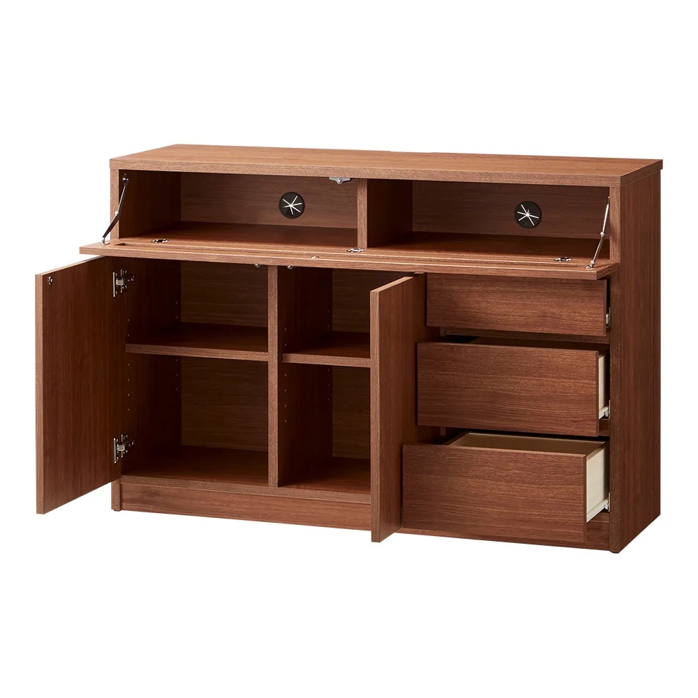 使用イメージ(エ)ブラウン木目柄 ※写真左から別売りのチェスト幅80cm高さ70cmタイプ、テレビ台・幅120cm高さ70cmタイプです。