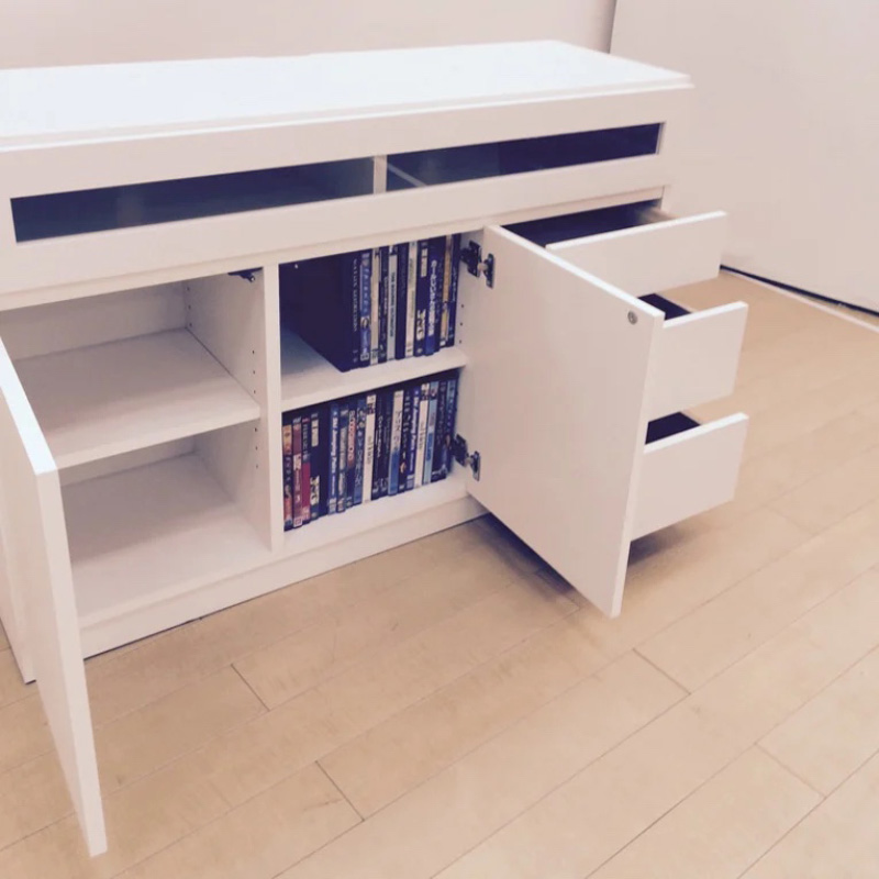 収納例 引き出しはレール付きなので開閉もスムーズです。 ※写真は別売りのテレビ台・幅150cm高さ70cmタイプです。