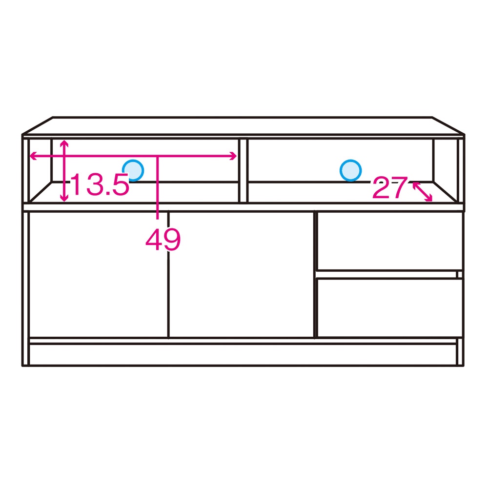 (ウ)ダークブラウン 見やすい高さを活かして、たっぷり収納できるから、綺麗が続きます。デッキ収納部(1スペースあたり)の有効内寸は、幅49cm、高さ13.5cm、奥行30cmです。
