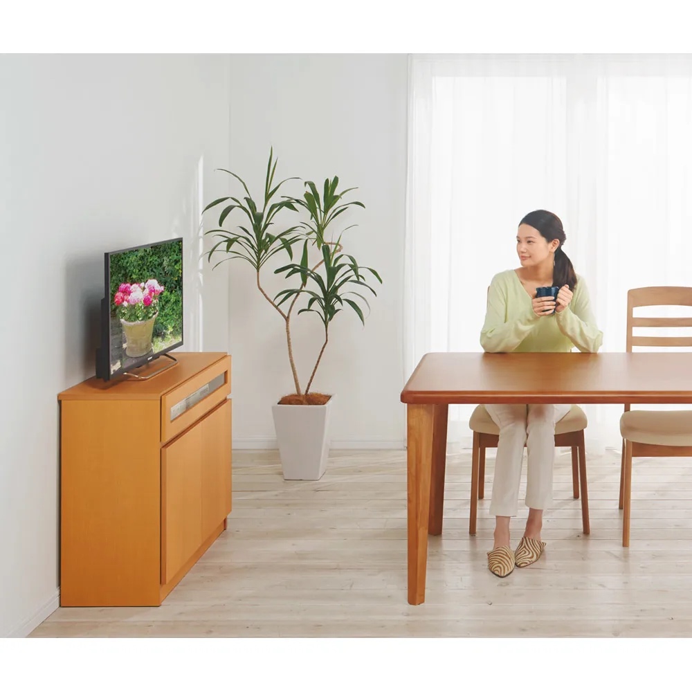 使用イメージ(イ)ナチュラル 高さ70cmタイプは一般的なダイニングテーブルの高さとほぼ揃うので、無理のない姿勢で視聴できます。 ※写真は別売りのテレビ台・幅105cm高さ70cmタイプです。