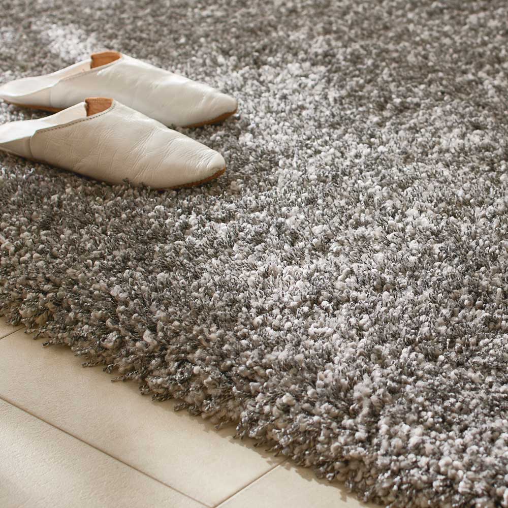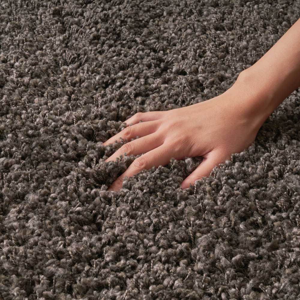 太・細の太さの違うツイスト糸をミックスした、ボリュームたっぷりシャギー。ずっと触っていたくなる高密度の踏み心地です。(エ) ブラウン