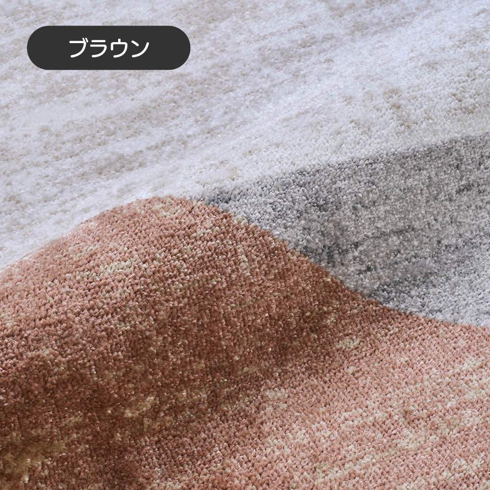 ニュートラルカラーを配したモダンデザインラグ。 スモーキーで絶妙なヴィンテージ感を演出しました。モダン・カジュアル・ヴィンテージ・カフェスタイル等どんな空間にもマッチするオールラウンドに活躍するカラー&デザインです。ニュートラルカラーを配したモダンデザインラグ。スモーキーで絶妙なヴィンテージ感を演出しました。モダン・カジュアル・ヴィンテージ・カフェスタイル等どんな空間にもマッチするオールラウンドに活躍するカラー&デザインです。光沢のある繊維により様々な角度から色の変化も楽しめる風合いとなっております。【打込み数】織りの密度を表すもので一般的には1平方メートルあたりにどれくらいの織り目があるかをノット数という単位であらわします。ノット数が多ければ多いほど高密度になり耐久性と重厚感がでるだけでなく、繊細な絵柄を表現することもできるようになり、一般的には価格も高くなります。【ウィルトン織り】18世紀中期・イギリスのウィルトン市で発祥した機械織りのラグで、次のような特徴があります。【1】自由な表現力と高いデザイン性無地・柄ラグ共にパイルの長さを自由に変えることができることであらゆる表現力を持ち、デザイン性の高いラグを作ることができます。【2】頑丈なつくりで、耐久性がある表面のパイル糸以外に、地径糸(じだていと)・覆糸(おおいいと)・緯糸(よこいと)の4種類の糸を、織りこんで作ってあります。表面のパイル糸が下糸に直接絡み合わせて織り込んであるるために、パイルが抜けにくく、しっかりとした耐久性に優れた仕上がりになっています。【遊び毛が出にくいヒートセット加工】パイル糸に熱処理(ヒートセット加工)を施し、更に撚り加工を施すことで、やわらかな感触と弾力のあるふみ心地に。また、遊び毛が出にくくホコリが立ちにくいので、お掃除もラクに。