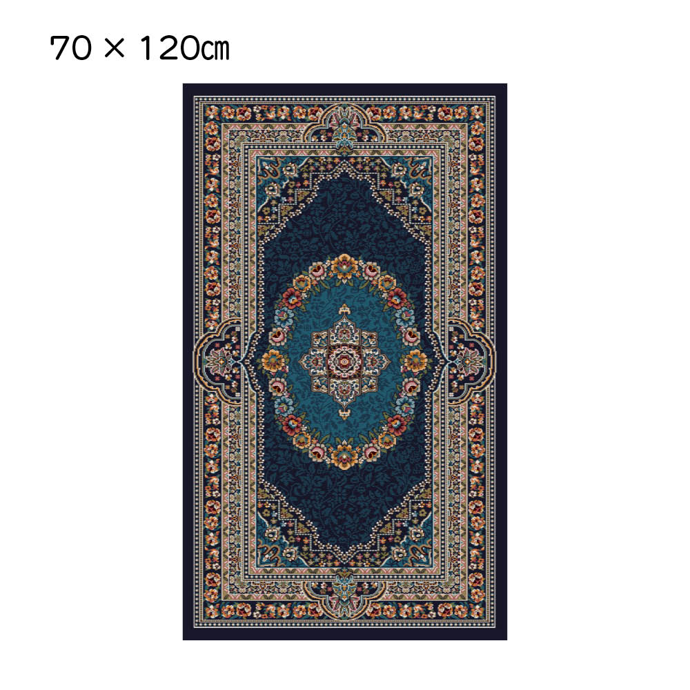 (ア)ブルー70×120cm 優美な柄とやさしい踏み心地で寝室を癒しの空間に