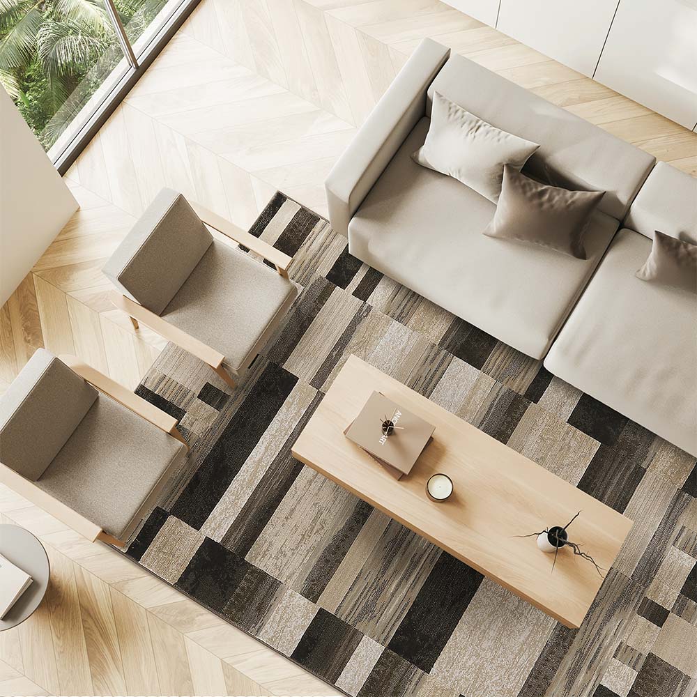 100万ポイントの緻密な織りが表現する粋なグラデーション。技とデザインの調和がとれたモダンなベルギー製のラグです。モダンデザインを得意とするベルギー製のラグ。洗練させた大人のシックでモダン空間を生み出します。100万ポイントの織りが表現するグラデーションも魅力です。【ウィルトン織】18世紀中期・イギリスのウィルトン市で発祥した機械織りのラグで、次のような特徴があります。【1】自由な表現力と高いデザイン性無地・柄ラグ共にパイルの長さを自由に変えることができることであらゆる表現力を持ち、デザイン性の高いラグを作ることができます。【2】頑丈なつくりで、耐久性がある表面のパイル糸以外に、地径糸(じだていと)・覆糸(おおいいと)・緯糸(よこいと)の4種類の糸を、織りこんで作ってあります。表面のパイル糸が下糸に直接絡み合わせて織り込んであるるために、パイルが抜けにくく、しっかりとした耐久性に優れた仕上がりになっています。【打込み数】織りの密度を表すもので一般的には1平方メートルあたりにどれくらいの織り目があるかをポイント数という単位であらわします。 ポイント数が多ければ多いほど高密度になり耐久性と重厚感がでるだけでなく、繊細な絵柄を表現することもできるようになり、一般的には価格も高くなります。【ポリプロピレン素材の特徴】ポリプロピレンは耐久性に優れた軽い素材で、吸湿性がないので濡れても乾きやすく、その分お手入れがしやすい素材です。着色する場合は原料から染色するので堅牢度に優れ,色落ちしにくいという特性も持っています。また他の素材に比べて遊び毛がほとんど出ないのも特徴です。【遊び毛が出にくいヒートセット加工】パイル糸に熱処理(ヒートセット加工)を施し、更に撚り加工を施すことで、やわらかな感触と弾力のあるふみ心地に。また、遊び毛が出にくくホコリが立ちにくいので、お掃除もラクに。【床暖房・ホットカーペット対応】床暖房がある部屋に、ラグやカーペットを敷きたいと考えている方におすすめ。ホットカーペットや床暖房にも対応しているため、オールシーズンで使えます。