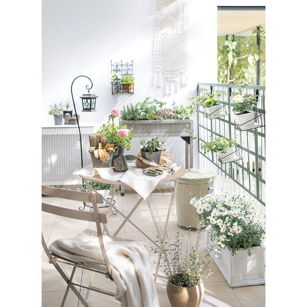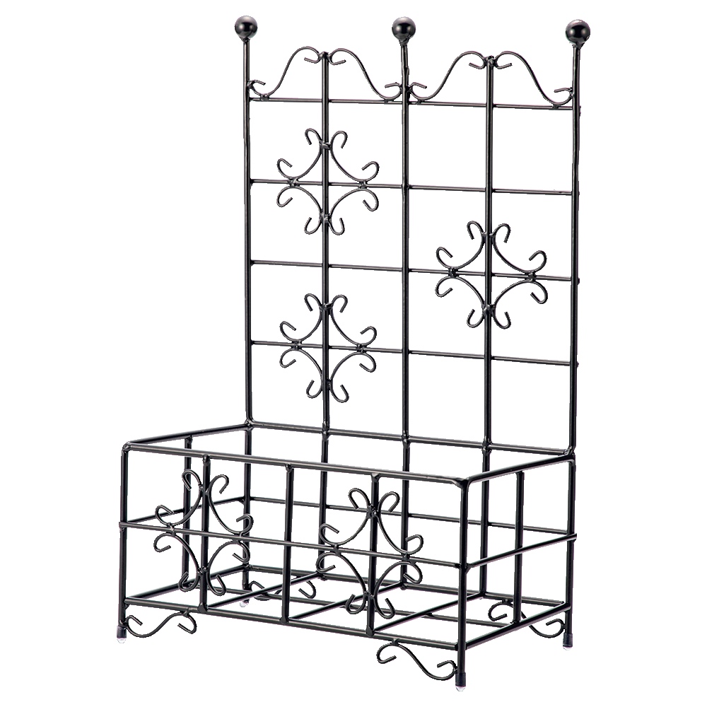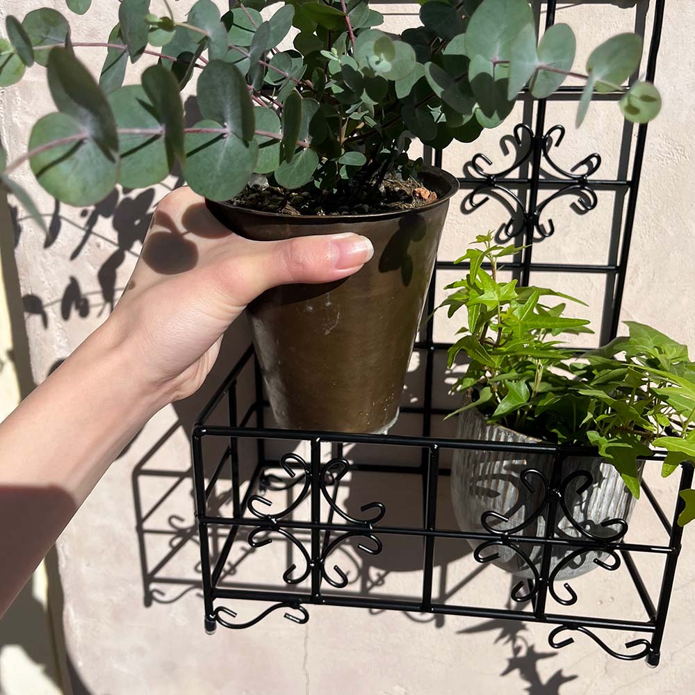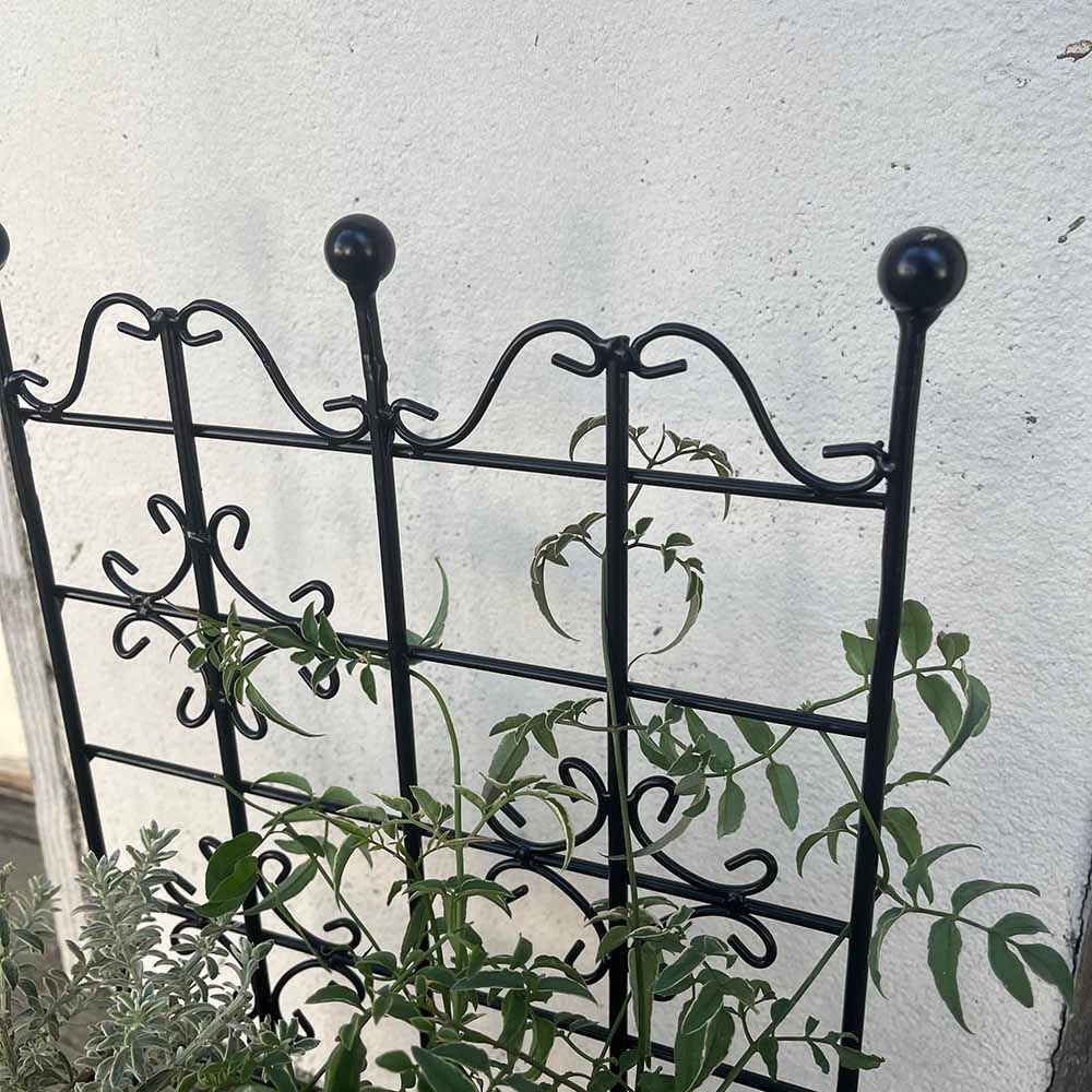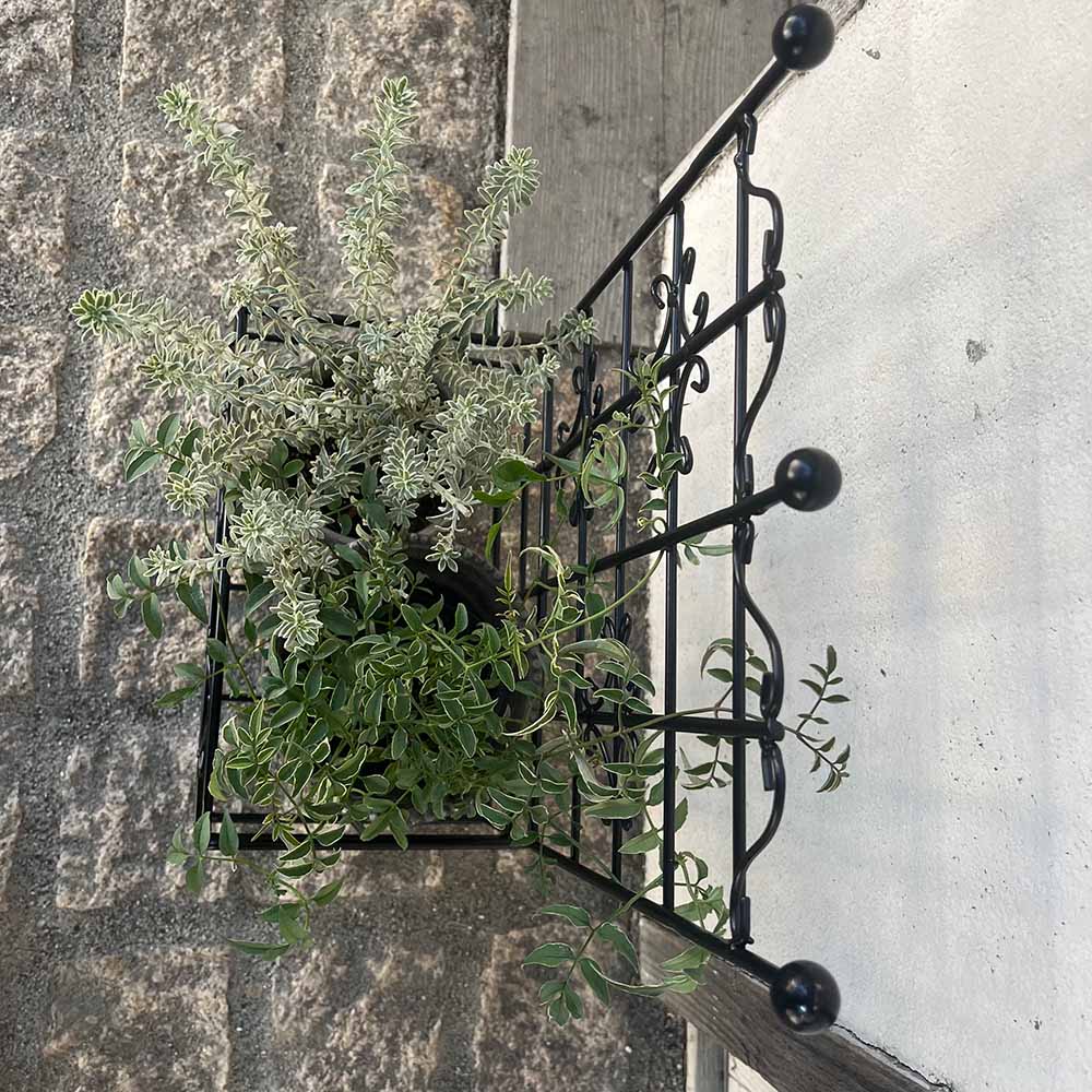 置き型、掛け型 どちらの使い方も可能な背景のあるプランターボックス。▼置き掛け2WAY・置き型底面を見てみると、実は脚があり地面に直接底面が当たらない仕様になっているんです。この脚のおかげで地面と密着しないから空気の通り道ができ、根腐れや虫対策になります。背景があるので、お花があっても無くても華やかな印象に。誘引も叶います。・掛け型市販のフックを使用して壁に掛ければ、育てている自慢のポットを目線の高さに持ってくることができます。中にフェイクグリーンを入れて壁掛けすれば、室内の殺風景な壁がガラリと変身。目の高さの緑化が叶います。▼2つ繋げると…背面のデザインはエレガントなモチーフが左に2つ、右に1つ…商品を2つ並べたときにバランスよくモチーフが配置されるように企画しました。壁際に置いても◎、花壇の背景にしても◎です。▼影も楽しめるこのモチーフの影を楽しむのも一興。つる性の植物を誘引すれば、風に揺れる植物の影とモチーフの影が折り重なります。風を感じ、植物を感じ、また影も含めた自然を視覚で楽しむのもまたいいですよね。
