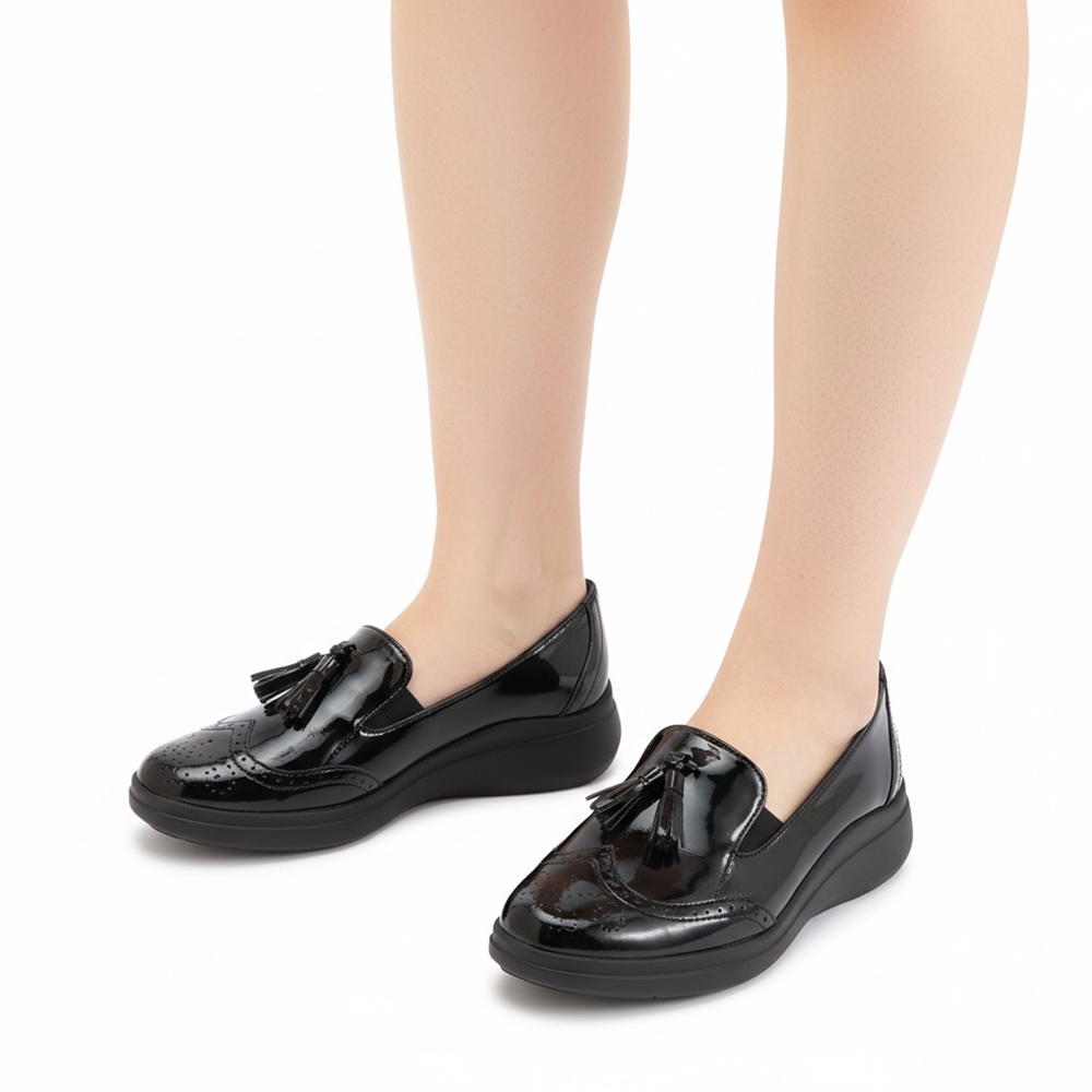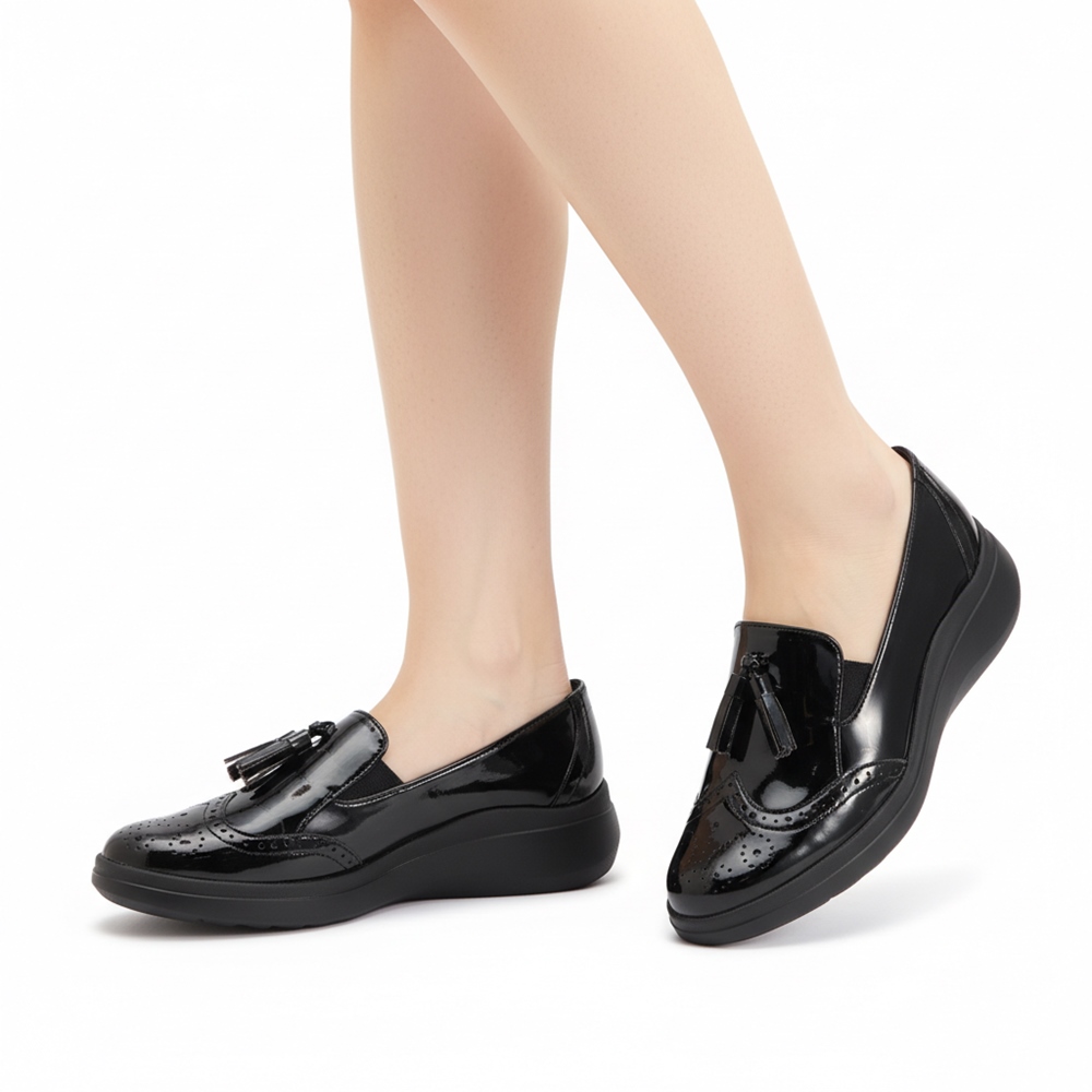 春の着こなしを格上げするのは足元。軽やかなアイテムで、お出かけが楽しくなること間違いなし。スニーカー風のソールでローファーデザイン。中敷きは衝撃吸収に優れたクッション入りで、歩きやすいのも魅力です。ヒールの高さはナチュラルにスタイルアップを叶えてくれる約4cm。すっきりしたシルエットなのでどんなコーディネートにも合わせやすく、人工皮革でお手入れ簡単なのも嬉しいポイント。