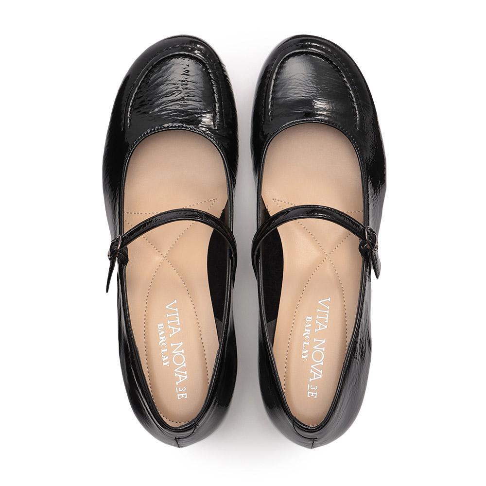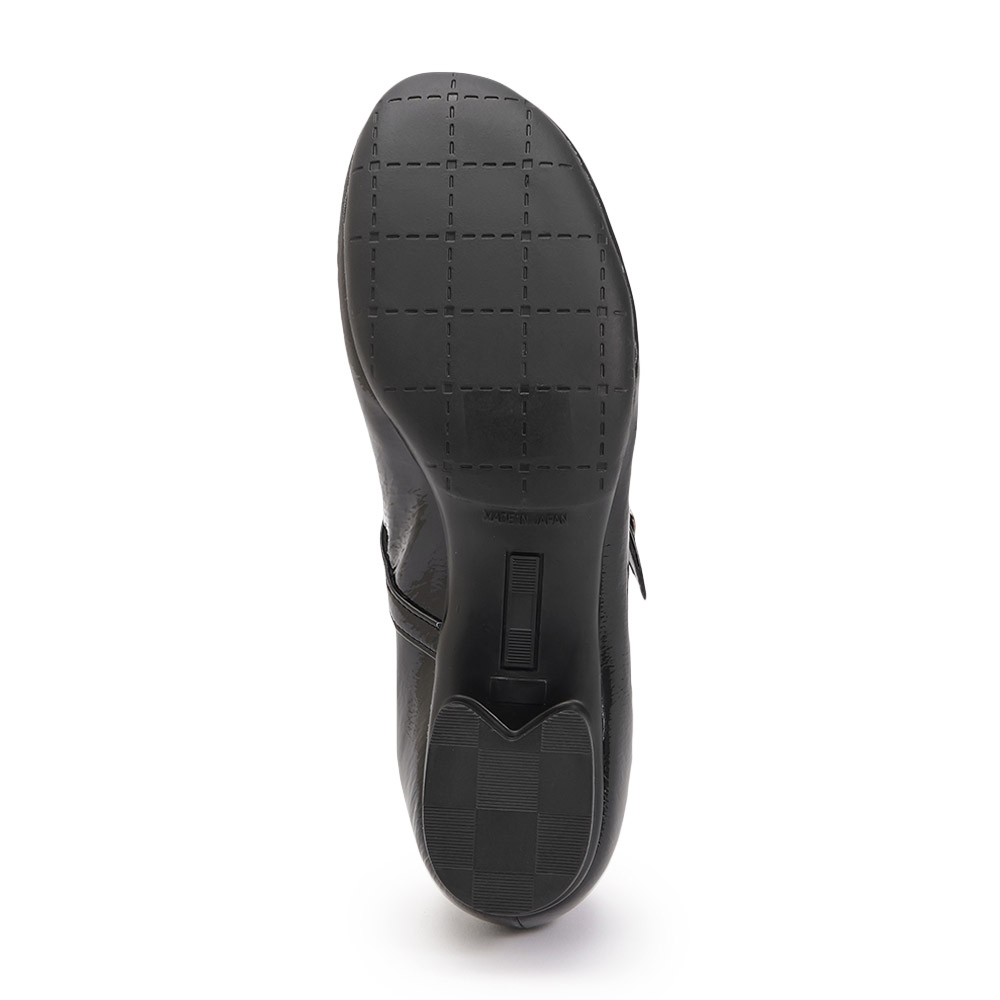 軽やかなアイテムで、お出かけが楽しくなること間違いなし。約2.5cmのヒールでペタンコすぎずに疲れにくく、合成ゴムソールと中敷きクッション入りで歩きやすさ◎。足入れが柔らかく、ベルト調節が可能なので甲が高い方もフィットします。中敷きは抗菌・防臭機能つき。ブラックはシワ感のあるエナメルで、スモーキーブルーは牛革スムースを使用しています。