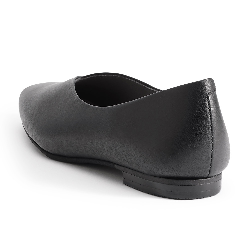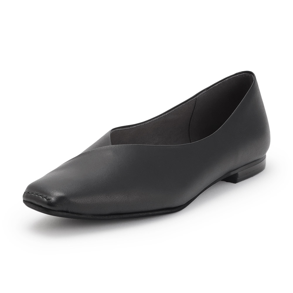 日本の知恵が、歩みに寄り添う美しさと心地よさを両立させた、日本発の一足履きやすさと美脚見えを両立した秀逸フラットシューズ快適な歩行とデザイン性を両立したフラットパンプス。上質なアッパーレザーの柔らかさと屈曲性を高めた中底が相まって、吸い付くような履き心地です。つま先のステッチも洒落たワンポイントに。≫ POINT左右の革を重ね合わせた優美なVライン。足先がすらりと見えてフラットでも脚長効果を演出します。