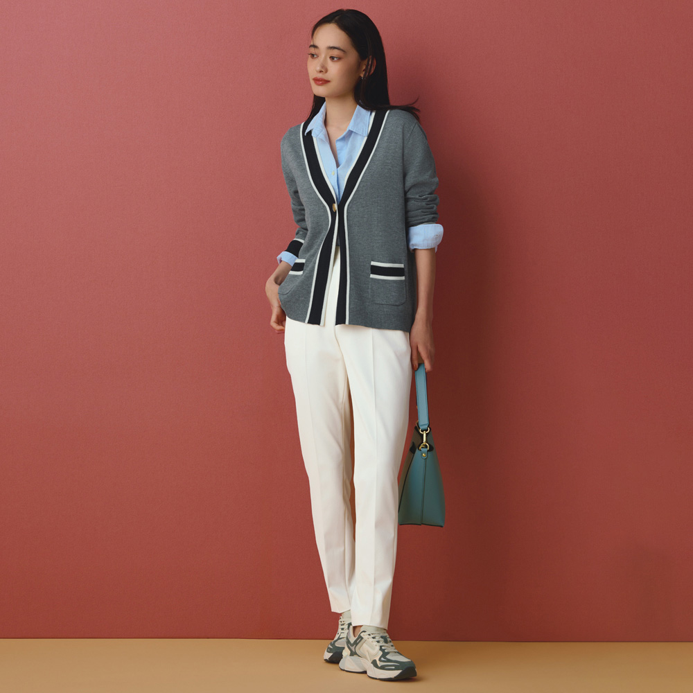 • POINT 02.クラス感のある白い貝ボタンは一点ずつ色や質感が異なるナチュラルな風合い。厚みがある本格派のボタンをセレクト。