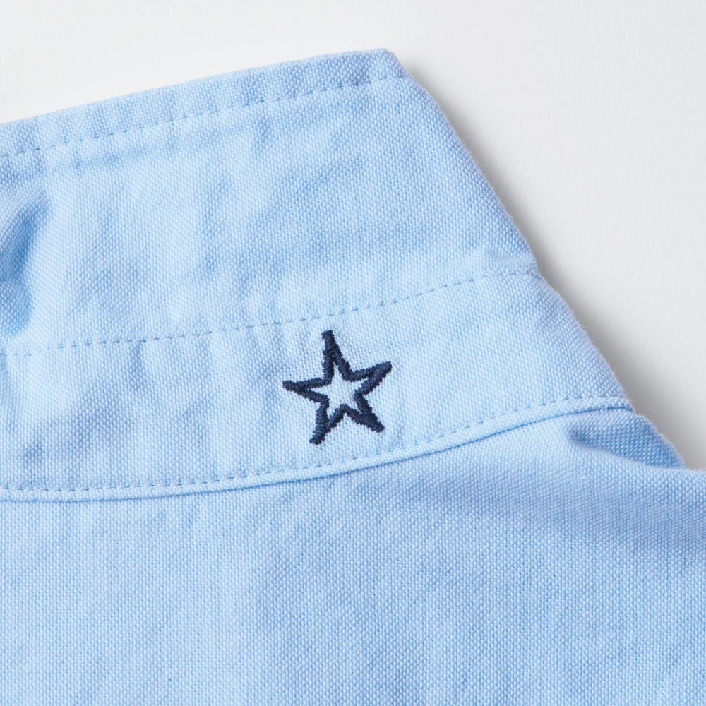 襟を立てて着用すると星のワンポイント刺しゅうが。さりげないデザインでまわりと差がつく一着に。