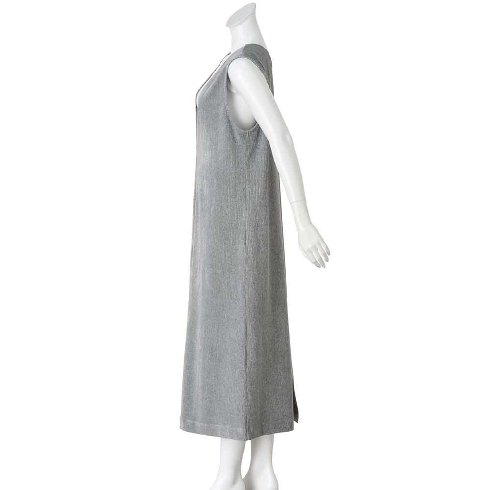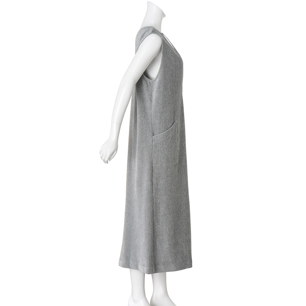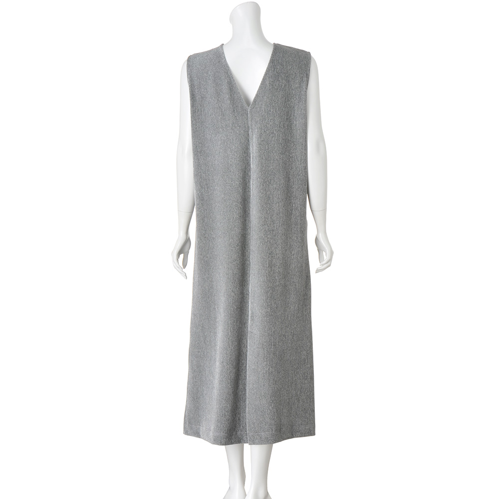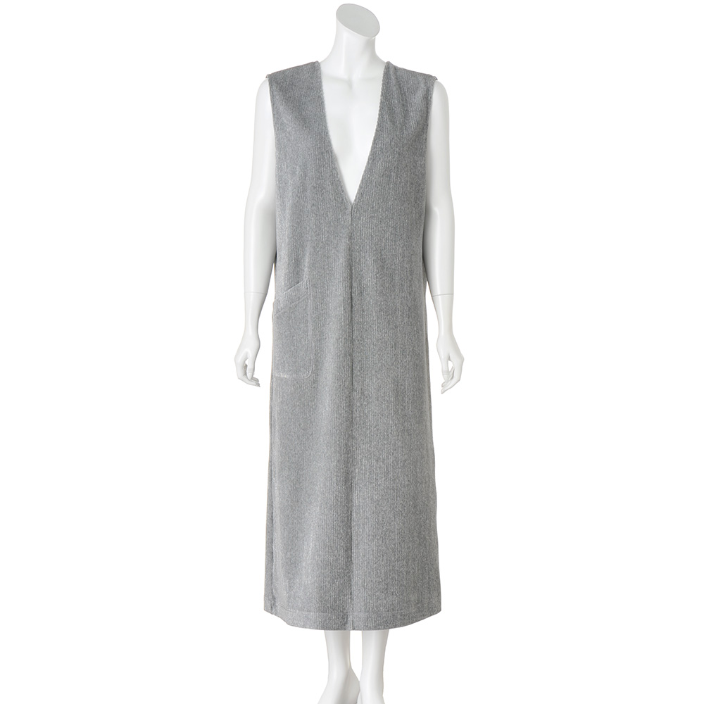 LUXURIOUS AND EFFORTLESSこだわりの素材、職人の技が光るディテール。ポリシーのあるアイテムは、着るだけで豊かな気持ちをもたらし、大人としての存在感を高めてくれるはず。冬らしい素材を煌めきでリフレッシュ柔らかなジャージー生地にラメが輝く、新鮮な印象のコーデュロイ。グレー×同系色シルバーラメのさりげない煌めきが、大人の遊び心を演出してくれます。ジャージーのため、通常のコーデュロイに比べて肌あたりが柔らかく、伸びやかでカジュアルになりすぎずにきれいめに着られます。Vネックが特徴的なロング丈のジャンパースカートは、後ろもV開きにすることで抜け感が加わり、スタイリッシュな着こなしが楽しめます。