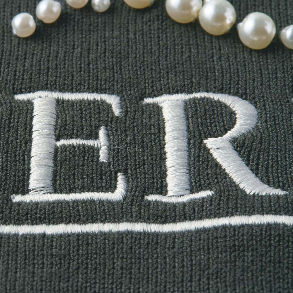文字は立体的な刺しゅうで艶をプラス。ハイクラスな印象に。