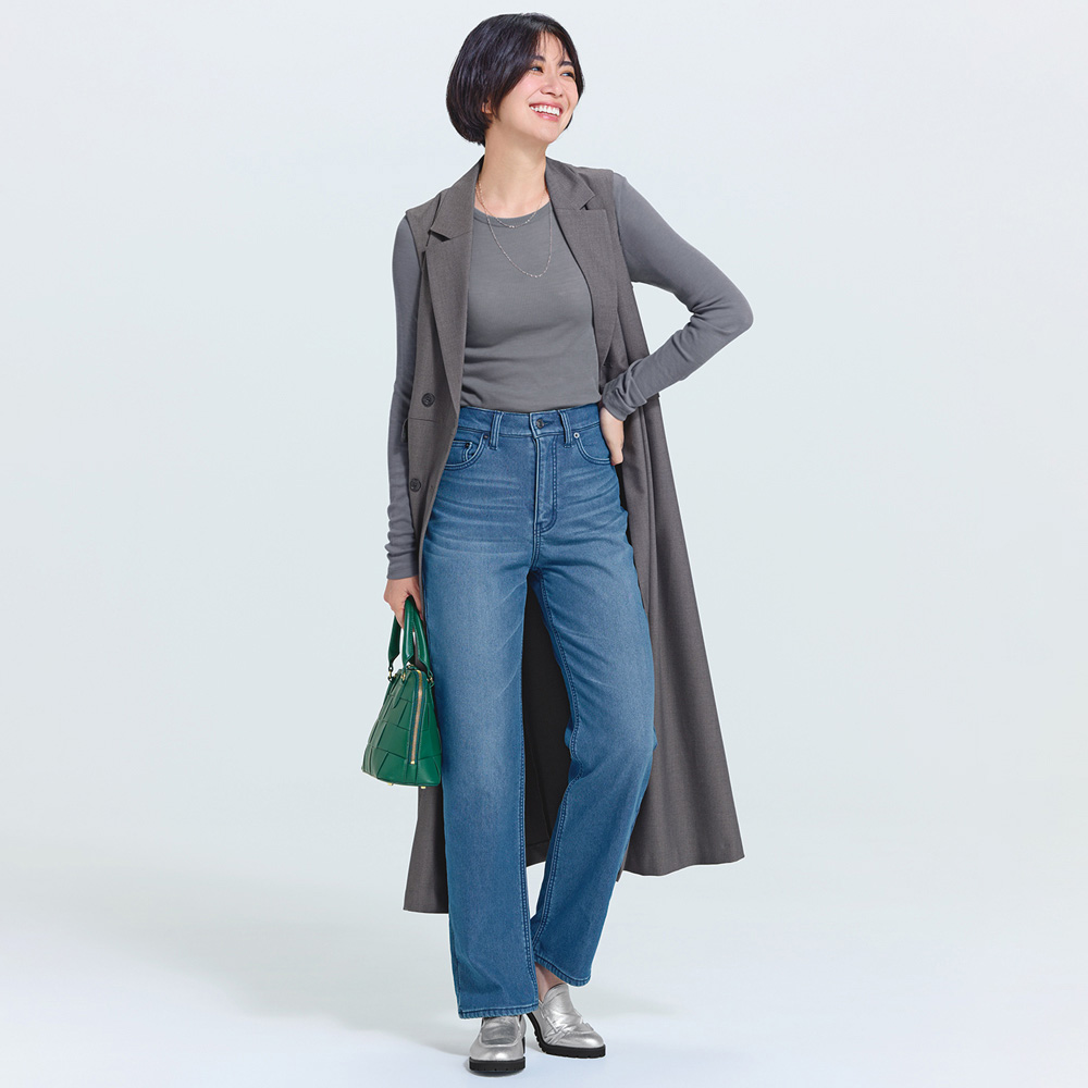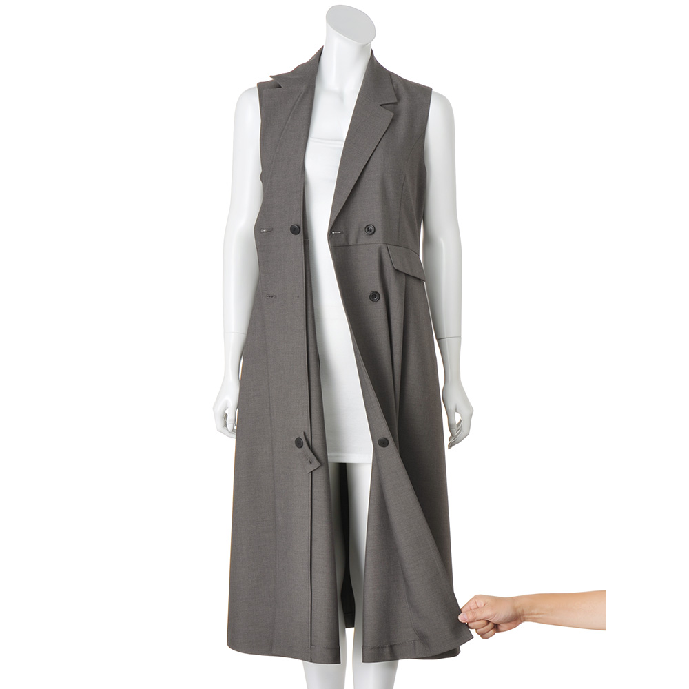 “抜け感”を楽しむ、品格きれいめスタイル毎日に寄り添いながら、きちんと感も華やかさも欲張れる。女性らしさを引き出し、品よく着映える「大人のおでかけ服」に、今年らしいエッセンスを加えました。ハンサムなジレワンピースをドラマティックに。端正とフェミニン、どちらも楽しんでテーラードカラーやダブルボタンなど、ジャケットライクなディテールを取り入れたジレワンピース。たっぷりタックを寄せたスカートがメンズっぽさを和らげ、程よくフェミニンな仕上がりに。ウエスト切り替えでスタイルアップも叶うシルエットもポイント。中に合わせるアイテム次第で、シーズンレスに着こなせます。