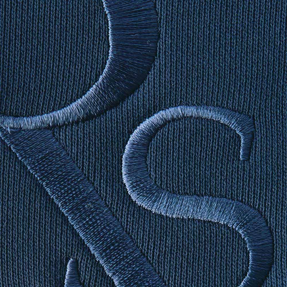胸元に本体と同色のロゴ刺しゅう入り。艶感があって上品。
