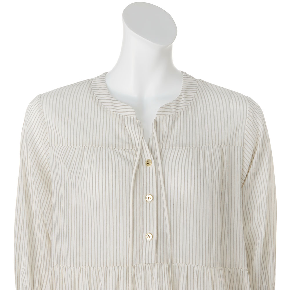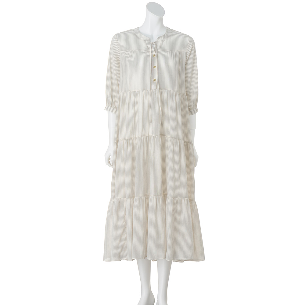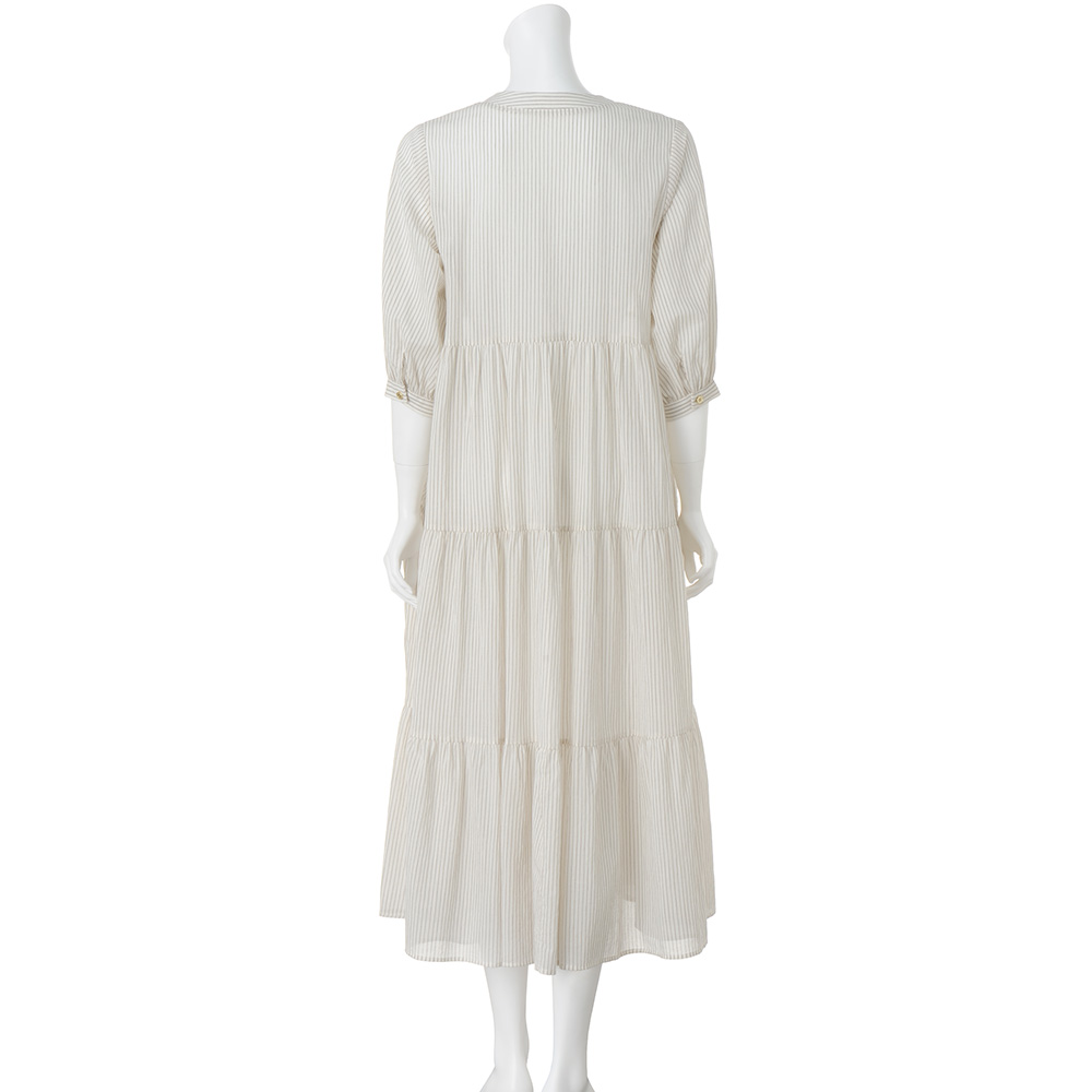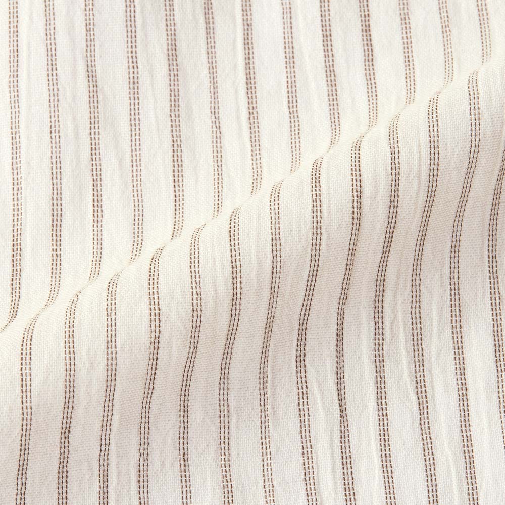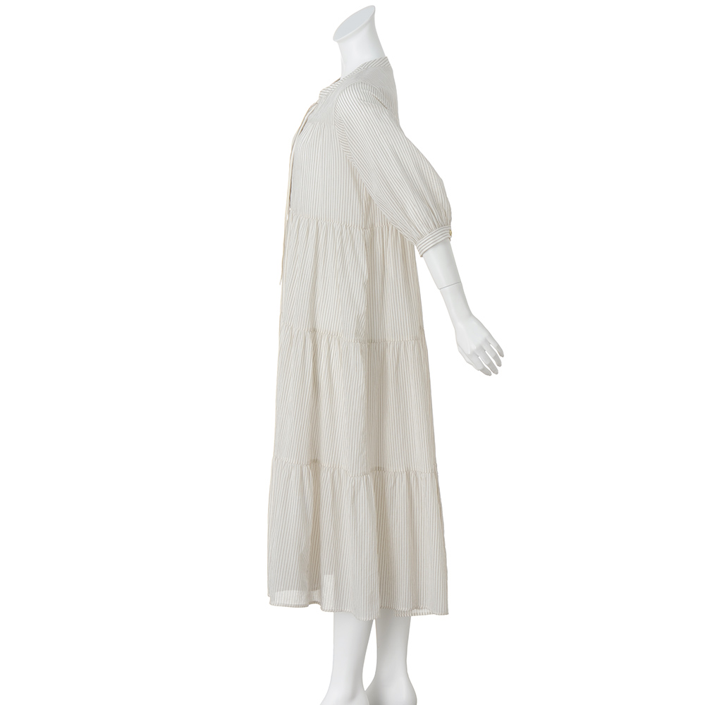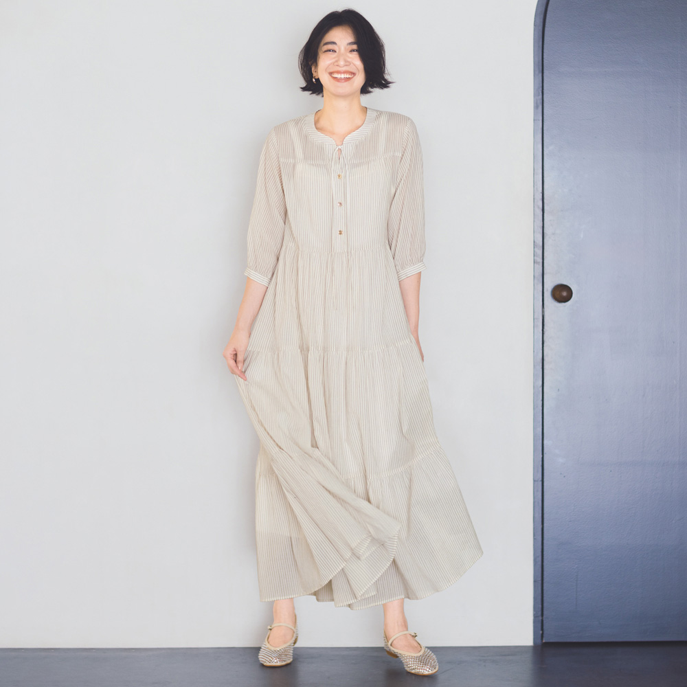 透け感のあるアイボリーのコットン生地にほどこした繊細なストライプが爽やか。