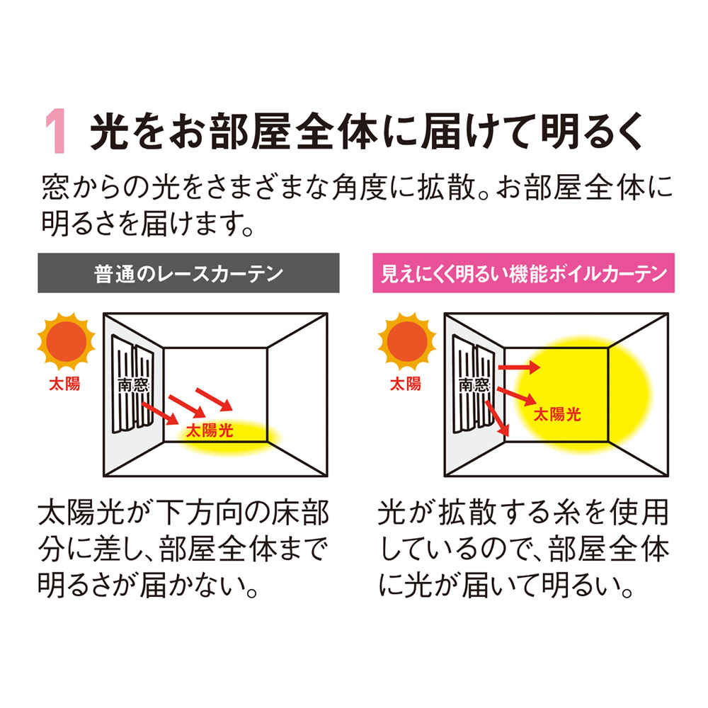 ≪幅100×丈208cm≫ 見えにくく明るい機能ボイルカーテン 2枚組 防炎カーテン カーテン 524631
