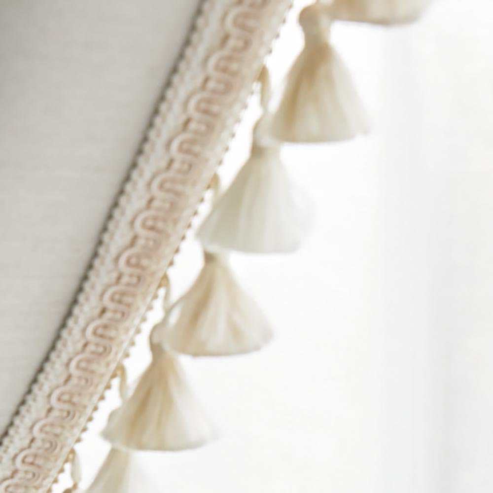 光沢のあるシャンタン調の生地に愛らしいフリンジがアクセントに。グレード感のある遮光カーテンです。