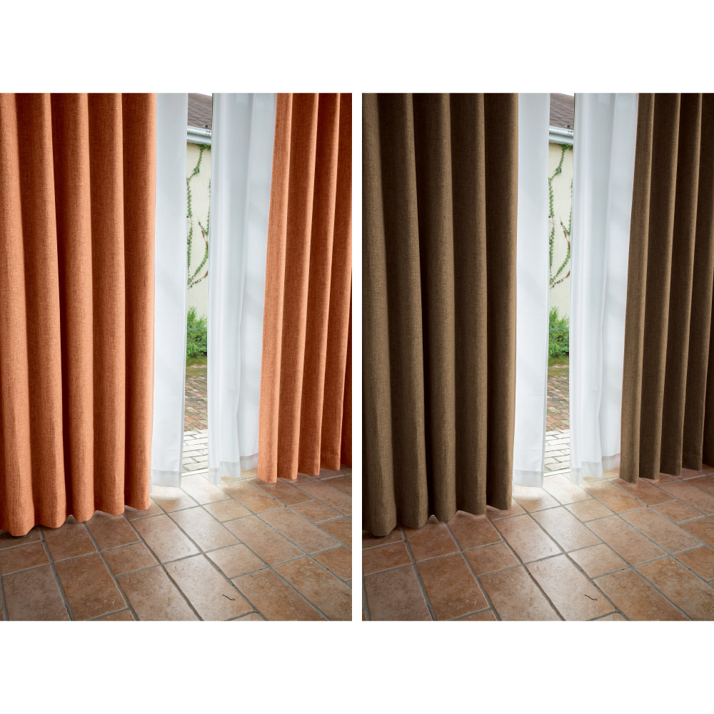 美しい色調のカーテンを選んでおうちでの時間を明るく過ごしたい。ミックス調大人色10色で、遮熱・遮光・形状記憶加工と機能も充実。(100cm幅既成サイズ)おうちにいる時間の気分転換に、こんなカラフルなカーテンに替えてみるのも。目を引く色使いなのにどこかシックな大人の雰囲気。自分を引き立ててくれる色を選んで、インテリアも一新すれば、オシャレ上級者の快適空間に。気分もアップして、テレワークも楽しくも明るく乗り切れそうです。春にぴったりの濃淡が美しいミックス調生地でナチュラルな風合い。遮光・遮熱に防炎と1年中快適に過ごせる機能付きの日本製。ドレープのきれいな形状記憶加工は、洗濯してもレールに吊るすだけ、効率的な家事も自宅時間を楽しむコツ!●ミックス調の大人色10色染まり方の違う2種類の糸で織り上げ、濃淡を出したミックス調。カラフルな色合いですが、落ち着いた風合いの織り生地です。裏面はツヤ感のある同系色で仕上げました。●窓に掛けたときのドレープにこだわった形状記憶加工窓に掛けた時に美しいシルエットになるよう形状記憶加工を施しました。開いても閉じても裾が広がりにくく、美しいドレープを保ちます。洗濯後もレールに吊るすだけで美しいドレープがよみがえるので、アイロンいらずです。●強い日差しも遮る遮光タイプ 2級以上の遮光率で、お部屋の明かりを外に漏らしにくいカーテン。(色によって遮光率が異なります。)黒糸を間に挟み込んで織り上げているため、裏面も表面の同系色で外から見てもキレイな遮光カーテンです。西日がまぶしいお部屋や、普段使用しないお部屋の家具やフローリングの日焼け防止にも。夜はお部屋の明かりが外に漏れにくいため、プライバシーも守ります。【1級遮光】・・・(イ)グリーン、(ウ)ブルー、(エ)ブルーグレー、(オ)パープル、(カ)オペラピンク、(キ)グレーベージュ、(コ)ブラウン【2級遮光】・・・(ア)イエロー、(ク)ベージュ、(ケ)オレンジ※遮光機能には等級があります。*参考 1級:遮光率99.99%以上 2級:遮光率99.80%以上99.99%未満 3級:99.40%以上99.80%未満●室内を快適に保つ遮熱効果太陽光を反射することで室内の温度を上がりにくくする、遮熱効果で室内を快適に保ちます。●もしもの時の防炎加工防炎加工で、もしもの時の燃え広がりを防ぎます。「防炎」表示ラベルの縫い込み付きです。(消防法で高さ31m以上の高層建造物には防炎カーテンの使用が義務づけられています)