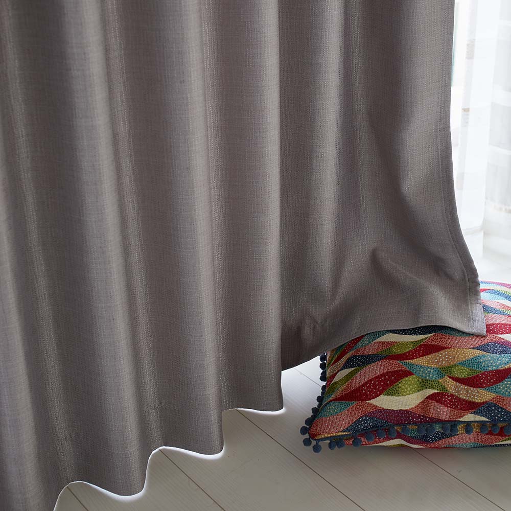 形状記憶の機能と、繊細なデザインの組み合わせが嬉しい遮光カーテン。シルクのような光沢糸と、繊細な杢町の糸を使用した遮光カーテン。無地でありながら、表情豊かに流れるような煌きが美しいカーテンです。グレージュはどんなお部屋にもしっくりと馴染む、使いやすいカラー。ブルーは爽やかな空気を送り込んでくれるような明るい印象のカラーです。同色のタッセル付き。幅、丈のオーダーも承っております。