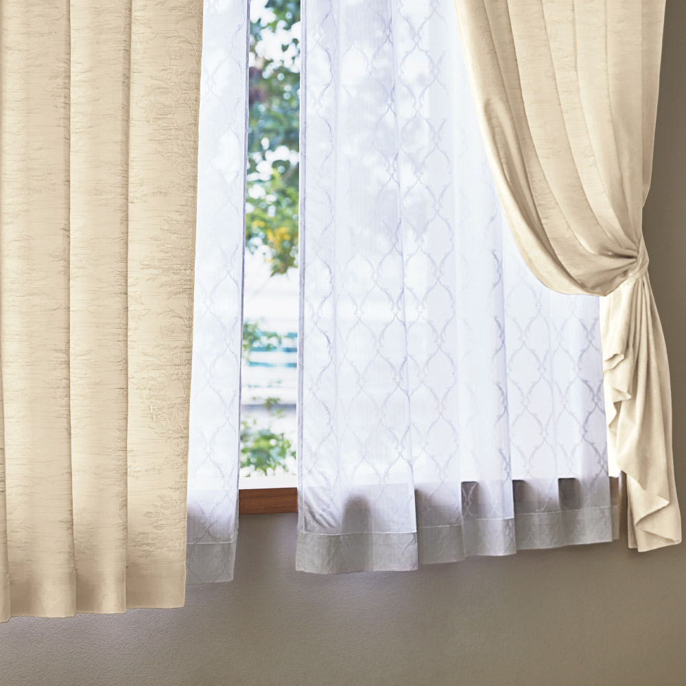 クラシカルなオーナメント柄で夏の窓辺をグレードアップ。(100cm幅2枚組・200cm幅1枚の 既製サイズ)