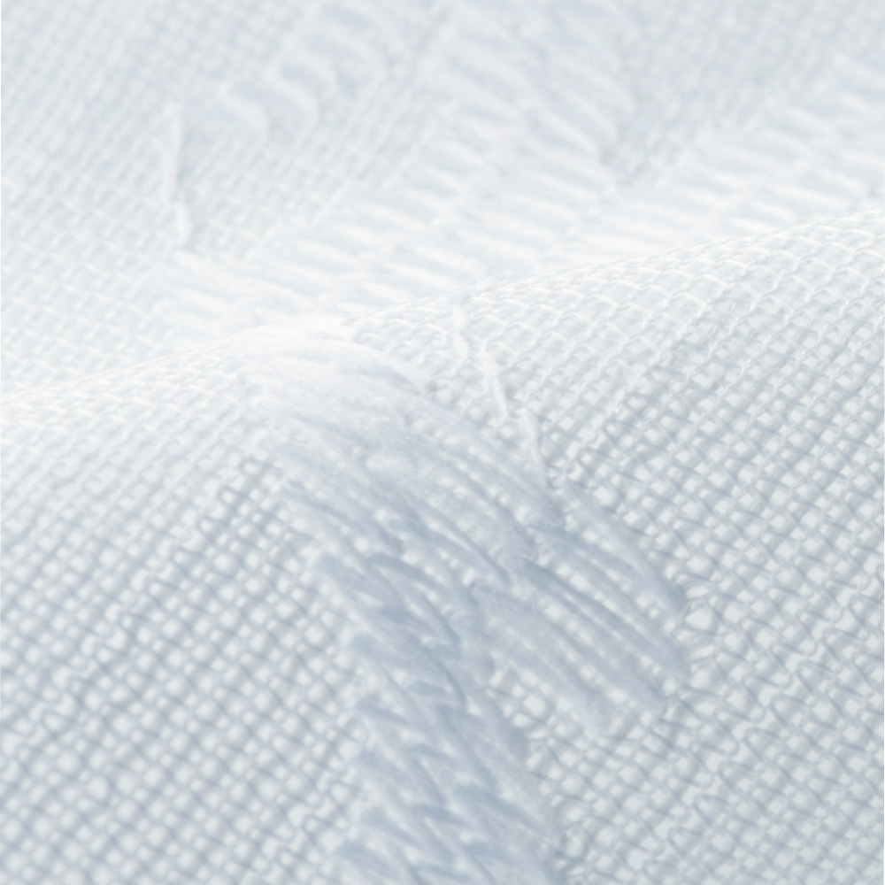 • 生地の色ホワイト(素材アップ) やわらかな風合いに浮かび上がるオーナメント柄がエレガント。