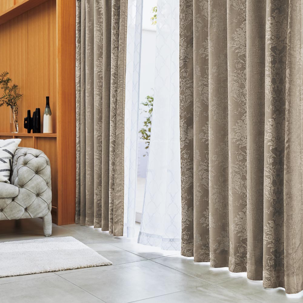 フェミニンなイメージのお部屋づくりにピッタリのレースカーテン。ジャカードでクラシカルなオーナメント柄を表現したエレガントなレースカーテン。光によって柄の見え方が変わる美しさも魅力です。遮熱機能もあり、別売りのオーナメント柄のカーテンと合わせて使用していただくと、遮熱効果をより発揮できます。【ポイント1】外からの暑さを防いで夏を涼しく快適空間に遮熱機能で夏の日差しを軽減。室内の温度上昇を抑えます。【ポイント2】いつも美しい形状記憶加工窓に掛けたときに美しいシルエットになるよう形状記憶加工を施しました。開いても閉じても裾が広がりにくく、美しいドレープを保ちます。洗濯後もレールに吊るすだけで美しいドレープがよみがえります。【ポイント3】安心の防炎加工火災発生時、燃え上がりやすいと言われるカーテン。このカーテンは防炎加工でもしものときの燃え広がりを防ぎます。(消防法で高さ31m以上の高層建造物には防炎カーテンの使用が義務づけられています)【ポイント4】丸洗いOK洗濯機で丸洗いできますので、いつも清潔に使えます。