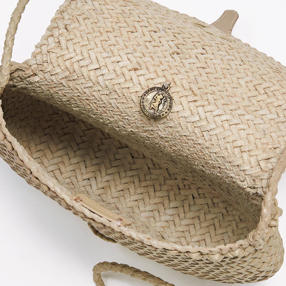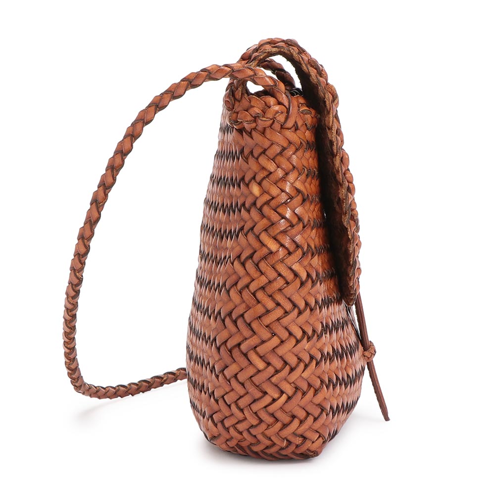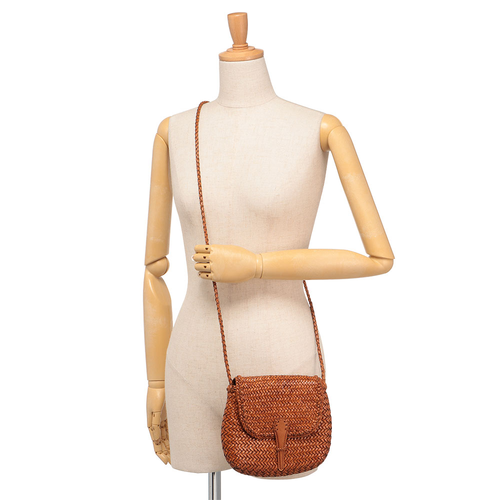 繊細かつ伝統のクラフト感に魅了ベルギーの洗練とインドの職人技が生み出す、メッシュレザーのポシェット。植物染めの革を細かなクロス編みにし、続きのかぶせは差し込み式に。使い込む程に馴染み、愛着が増します。