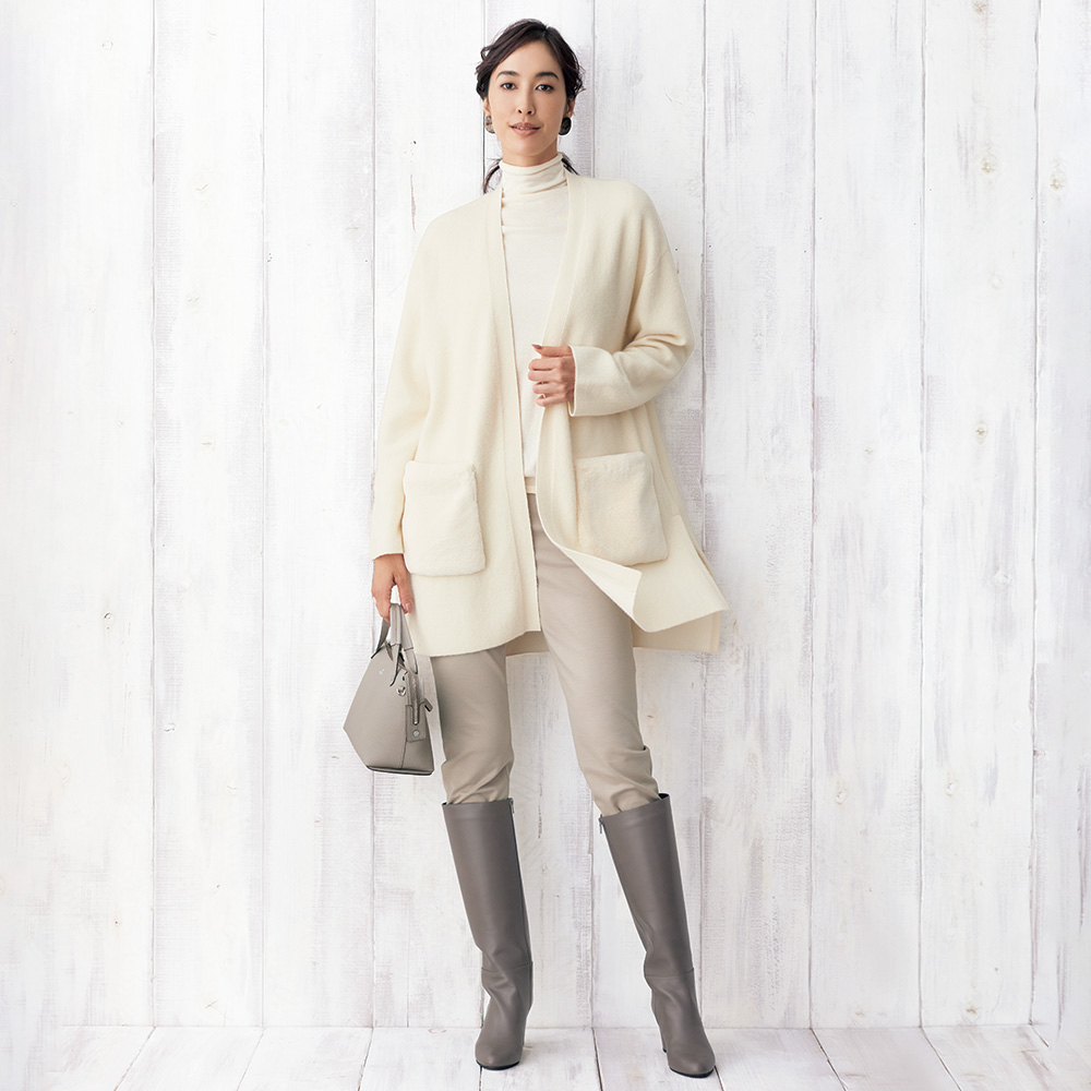 暖かさも美脚も妥協しないチュニックのベストパートナー「東レ(株)」が開発したクロスウォーム(R)素材の定番人気パンツ。吸湿発熱機能が生み出すぬくもりと、特殊な編み組織によるベアポンチ素材が、動きに合わせて脚をすっきり美しく見せ、暖かさもしっかりキープします。ゴム仕様のウエストベルトと深めの股上が心地よくフィット。後ろ姿まで計算されたダーツとパッチポケットが、大人の品格を高めるディテールです。厳選されたカラーバリエーションで、毎日のスタイリングをより豊かに彩ります。